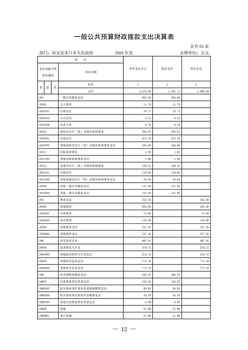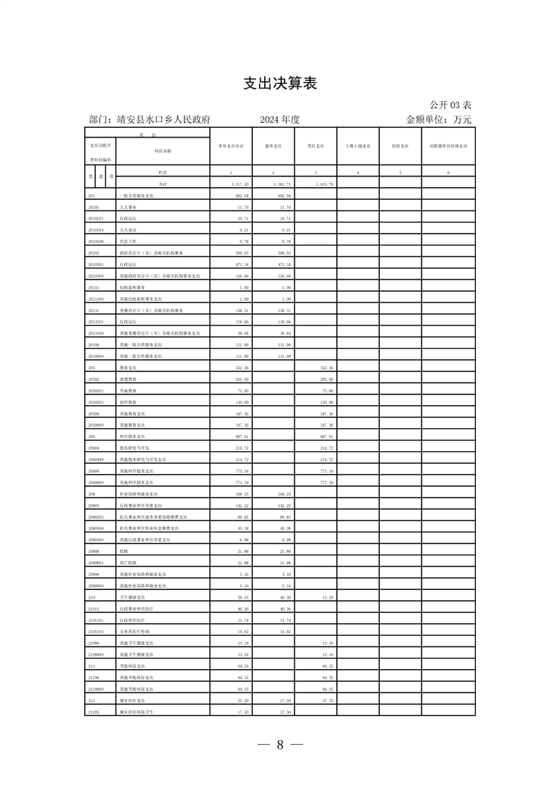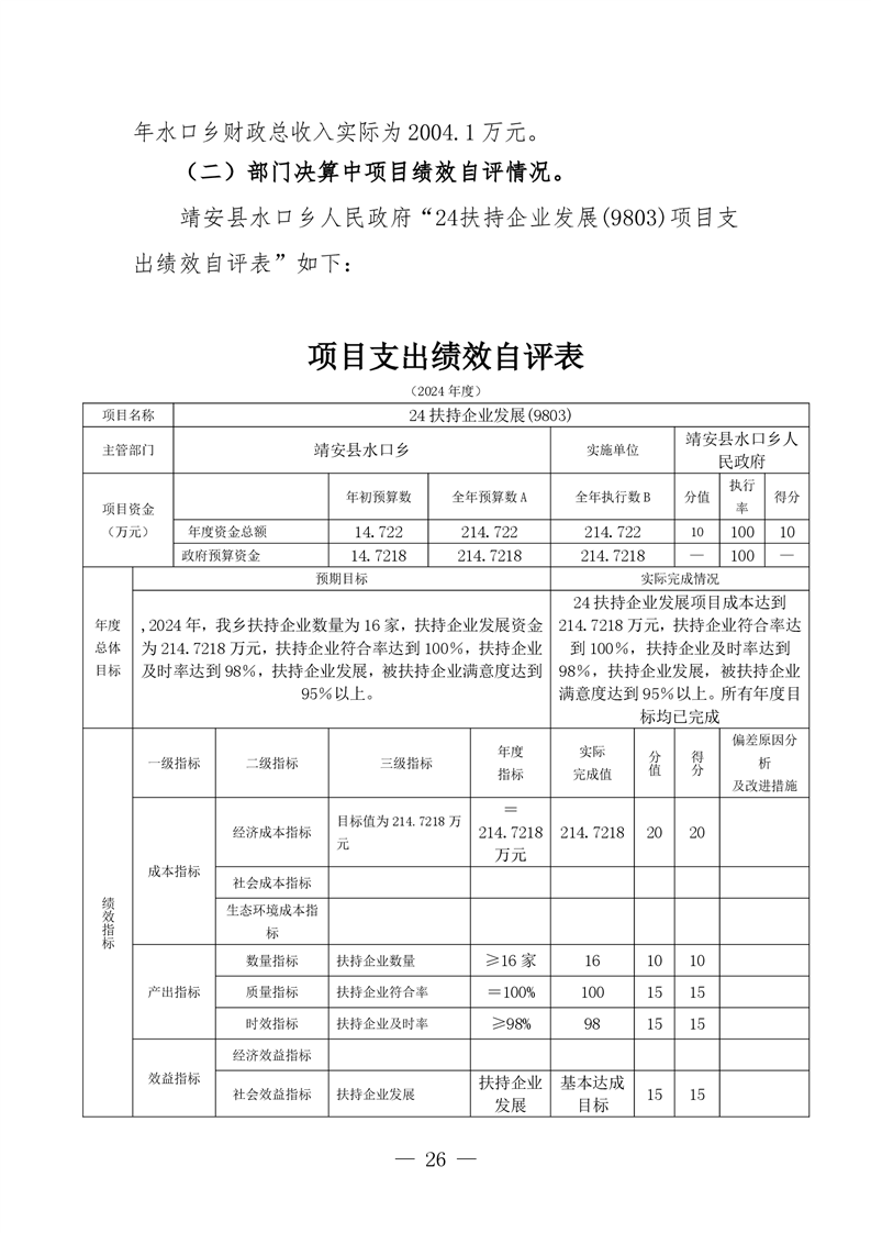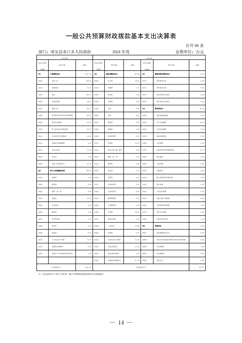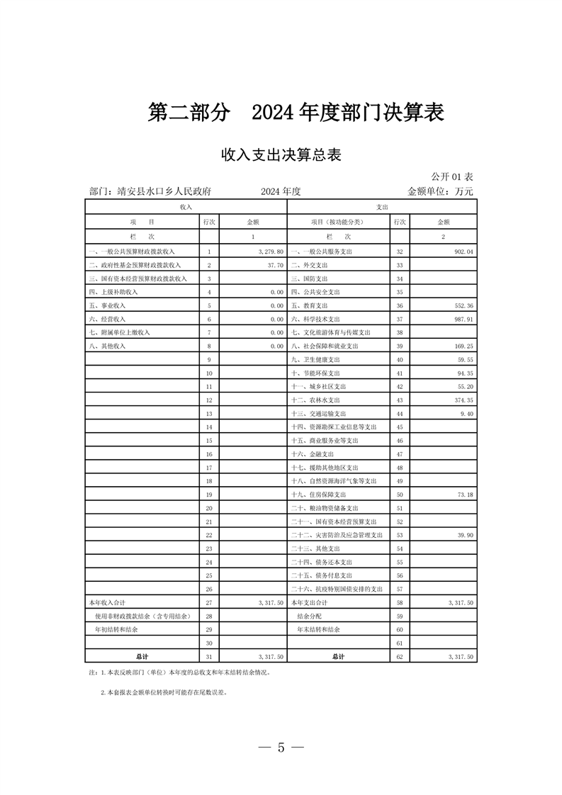 靖安縣水口鄉人民政府2024年度部門決算