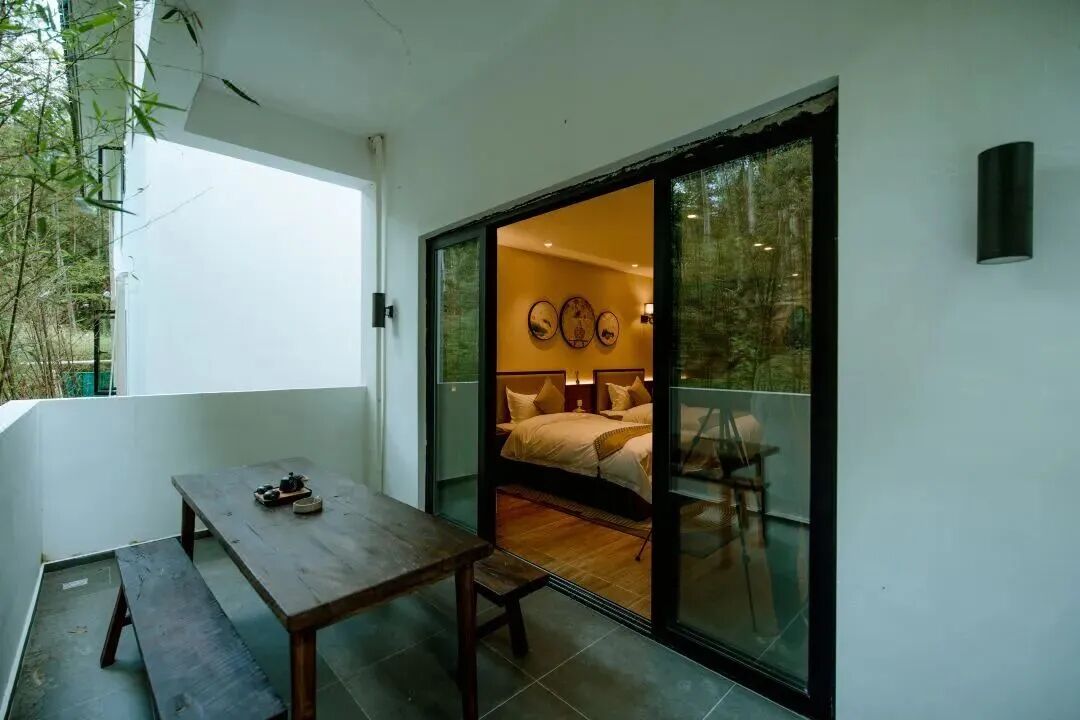 竹林以其特有的青翠和挺拔,為沐光源宿構建了一個天然的屏障,隔絕了外界的喧囂與紛擾。微風吹過,竹葉沙沙作響,仿佛是大自然最悠揚的樂章,讓人心靈得到徹底的放松和平靜。