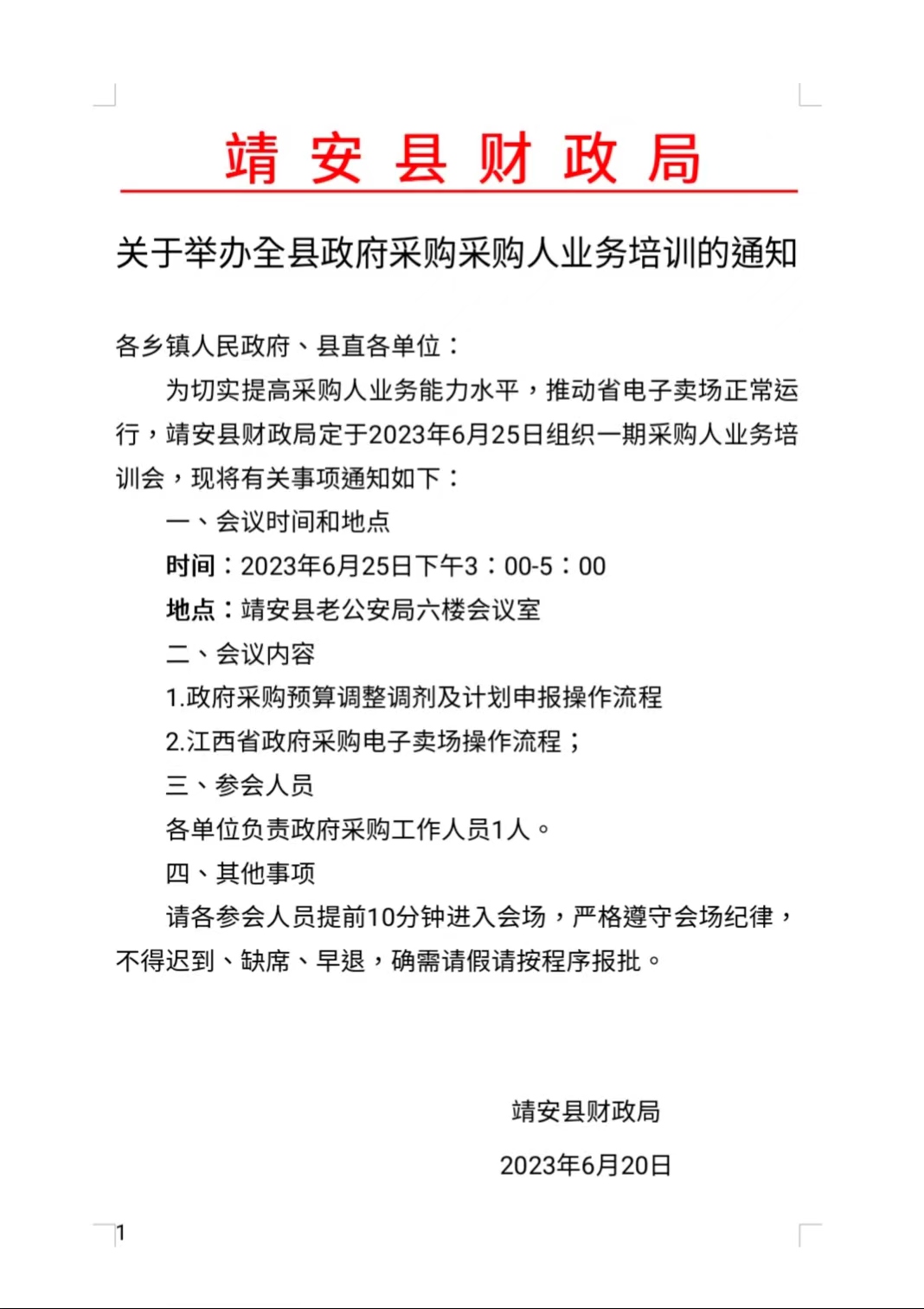 關(guān)于舉辦全縣政府采購采購人員業(yè)務(wù)培訓(xùn)的通知