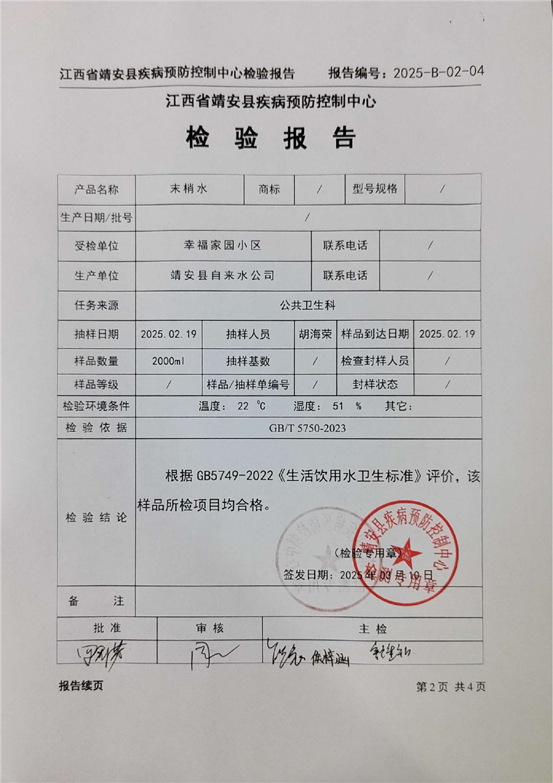 2025年一季度水質(zhì)檢驗(yàn)報(bào)告