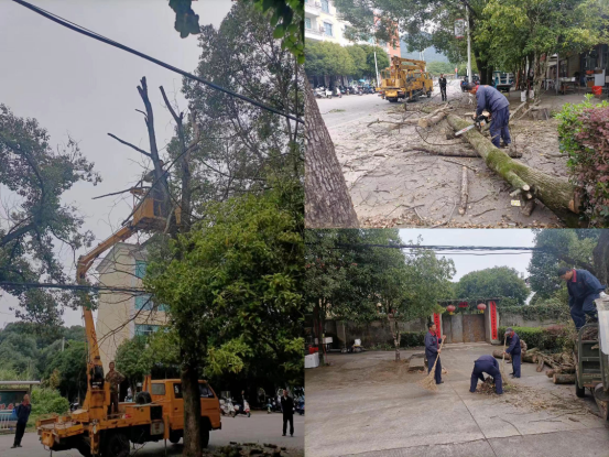 10月8日,市容一中隊隊員陳傳民在進行日常巡查時發現一中學府路旁兩棵直徑約25厘米、高約7米的樟樹已枯死,該路段為中學生上下課必經之地,人流量較大,枯樹存在倒伏等安全隱患。大隊長舒惠龍在聽取相關情況匯報后,高度重視并立即聯系園林所副所長吳耀文進行處理。10日下午,枯樹隱患清除完畢。附近群眾紛紛對城管工作人員此次及時有效的處理工作表示認可與感謝。