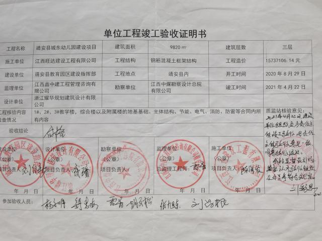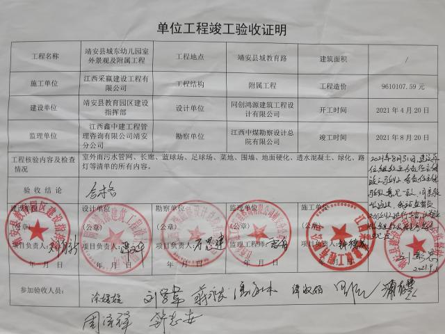 建設單位:靖安縣教體局 設計單位:浙江耀華規劃建筑設計有限公司 監理單位:江西鑫中建工程管理咨詢有限公司 施工單位:江西旺達建設工程有限公司 |