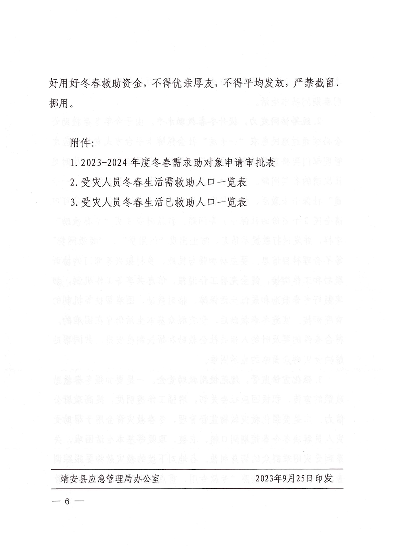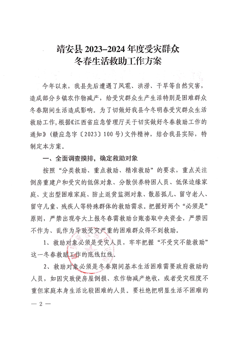 靖安縣2023-2024年度受災(zāi)群眾冬春生活救助工作方案