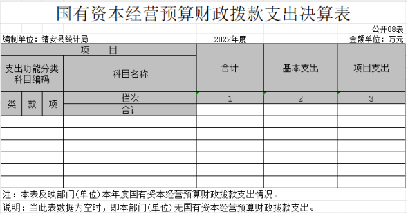 八、國有資本經營預算財政撥款支出決算表