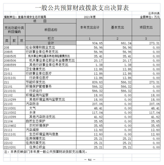 五、一般公共預算財政撥款支出決算表