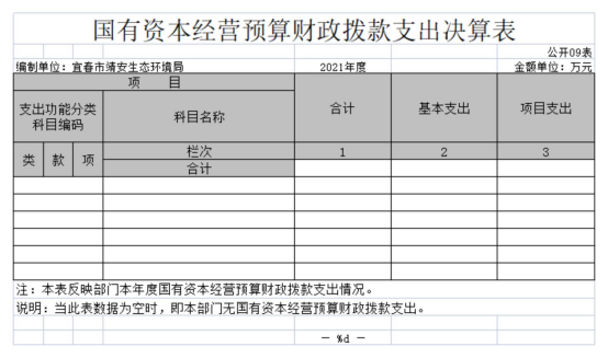 九、國有資本經營預算財政撥款支出決算表