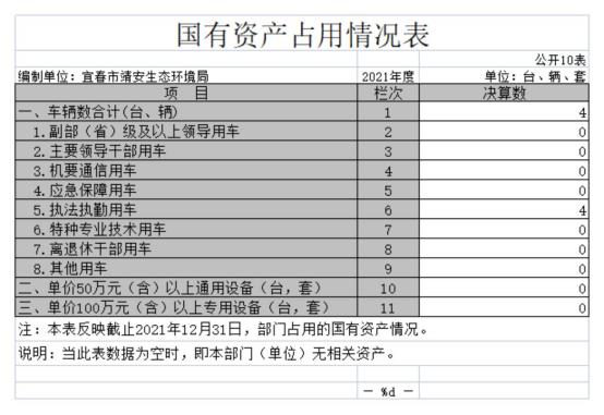 十、國有資產占用情況表
