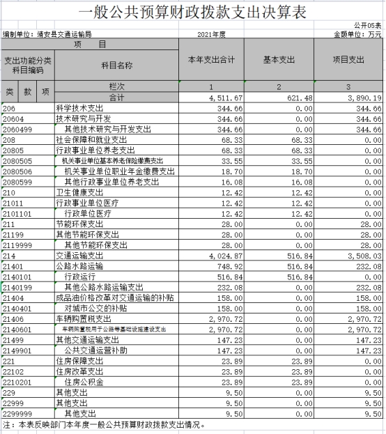 (九)交通運(yùn)輸支出-公路水路運(yùn)輸-行政運(yùn)行:反映與公路、水路運(yùn)輸相關(guān)的支出中行政單位的基本支出。