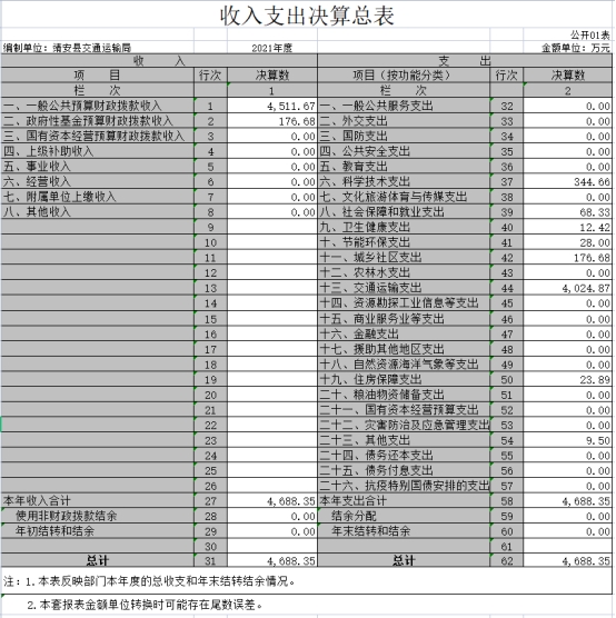 納入本套部門決算匯編范圍的單位共1個(gè),即為靖安縣交通運(yùn)輸局本級(jí)。