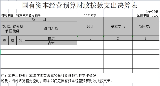 九、國有資本經(jīng)營預(yù)算財(cái)政撥款支出決算表
