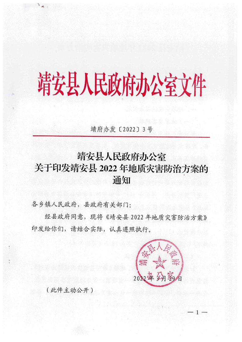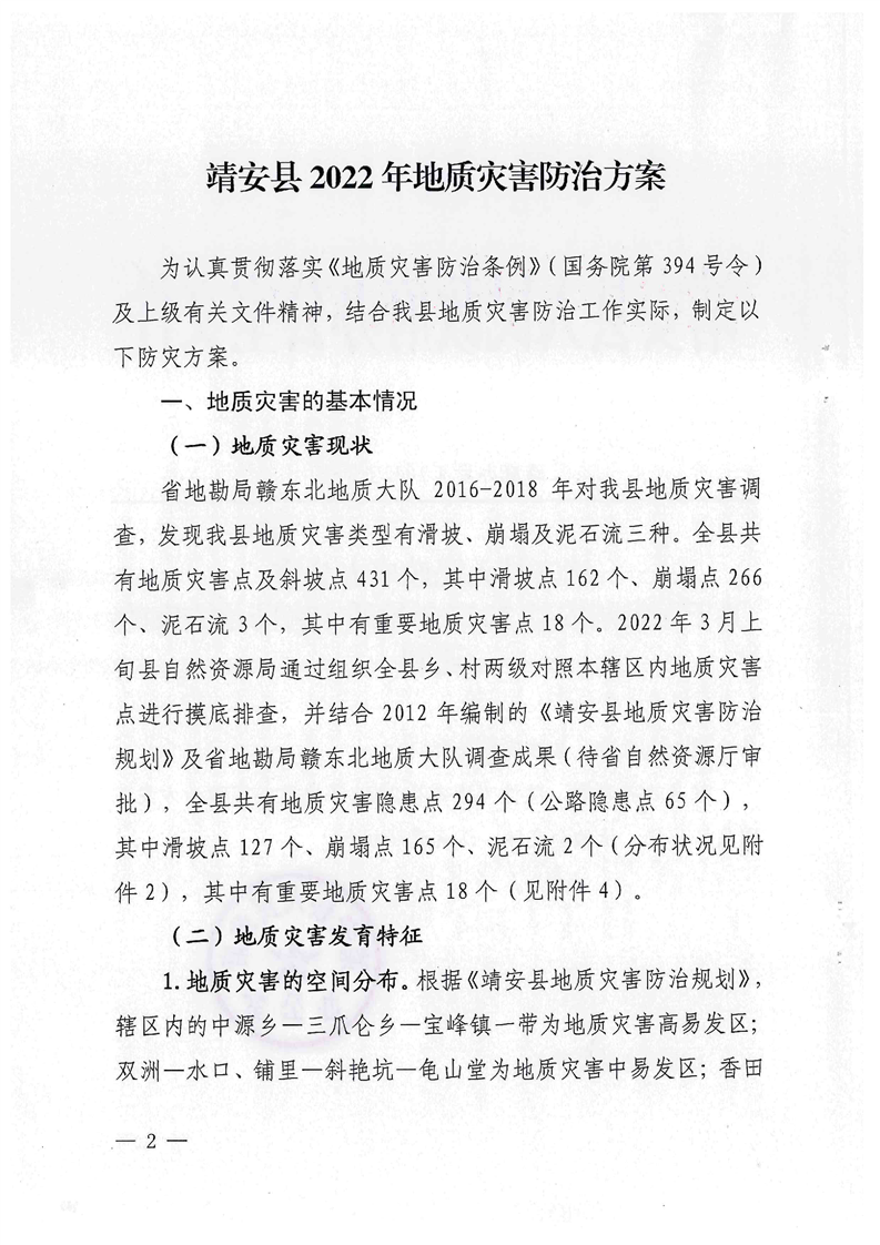 關于印發《靖安縣2022年地質災害防治方案》的通知