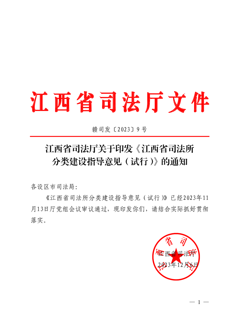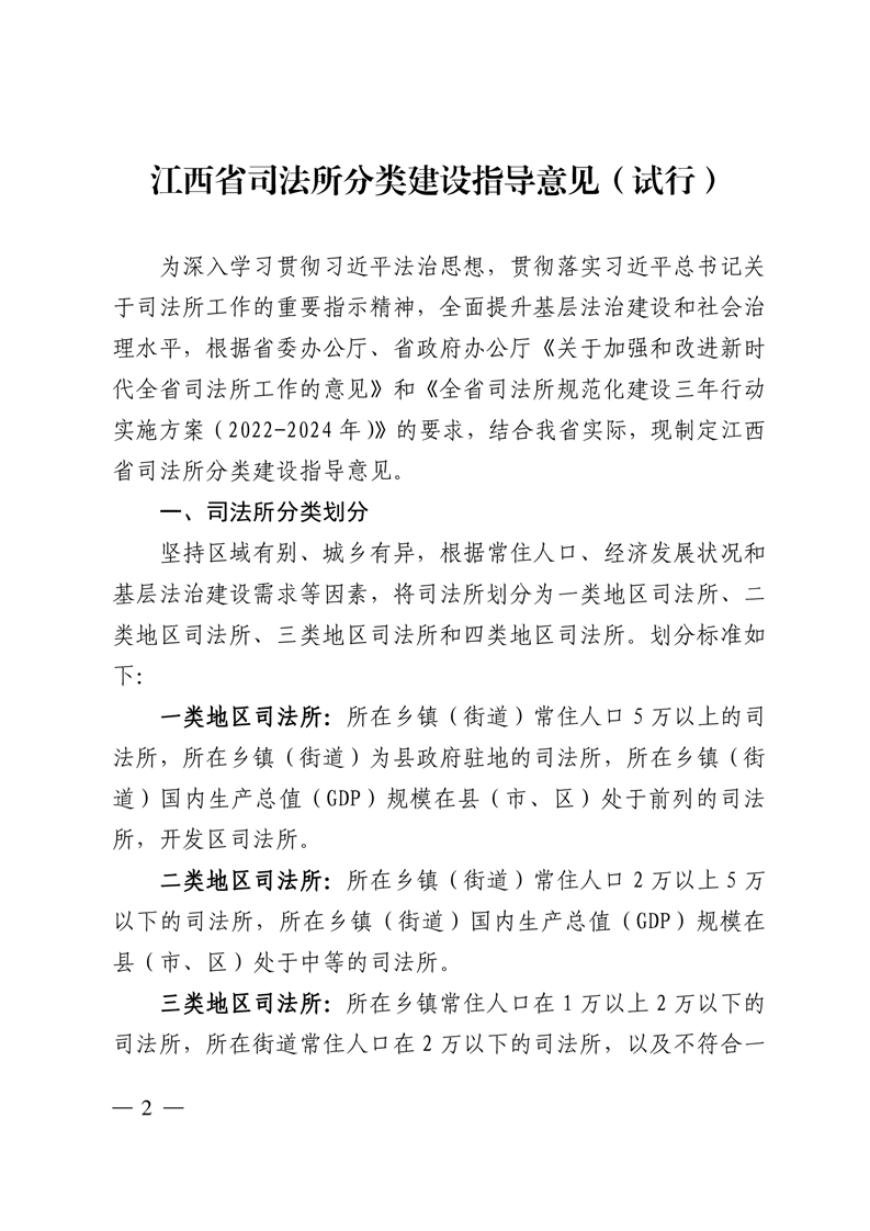 江西省司法廳關于印發(fā)《江西省司法所分類建設指導意見(試行)》的通知