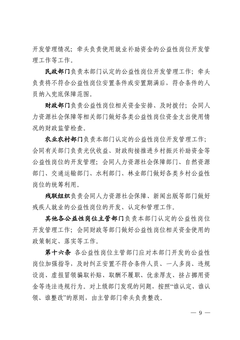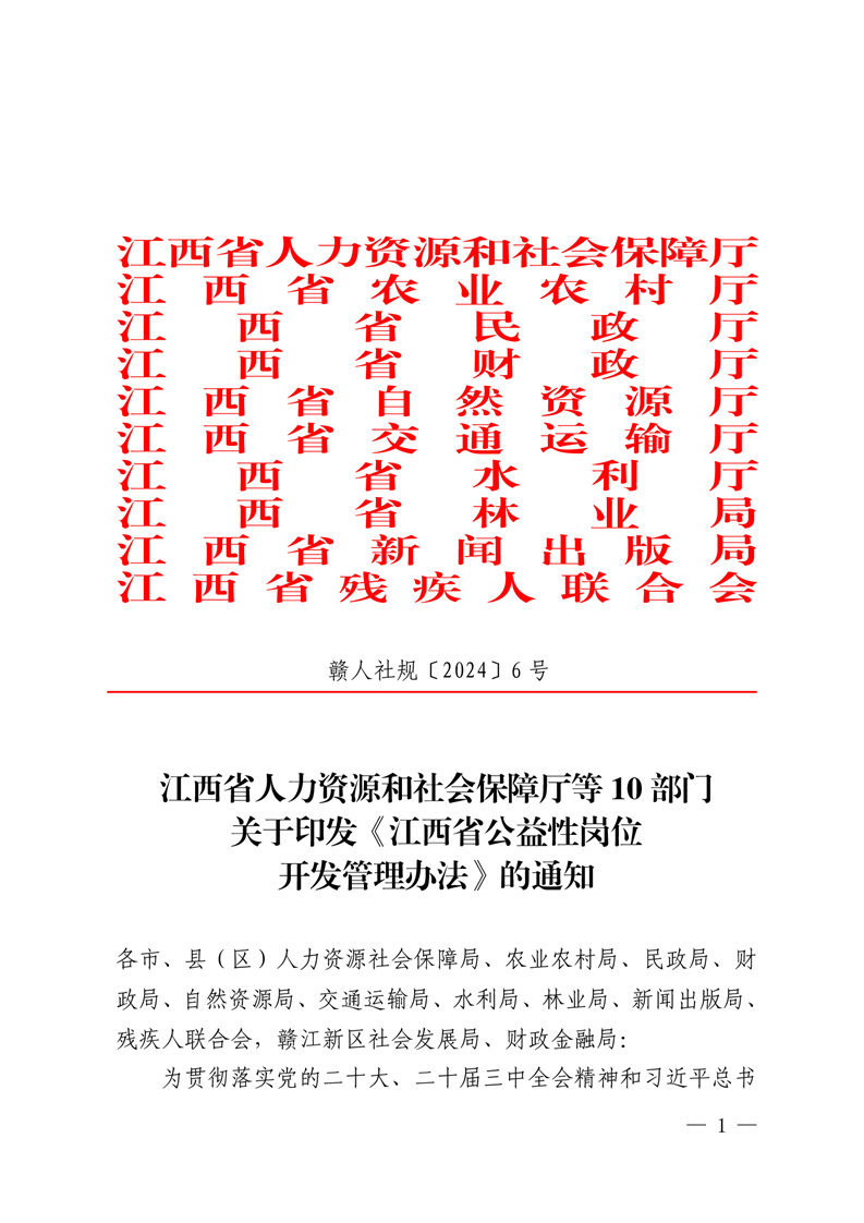 江西省人力資源和社會保障廳等10部門關于印發《江西省公益性崗位開發管理辦法》(贛人社規〔2024〕6號)
