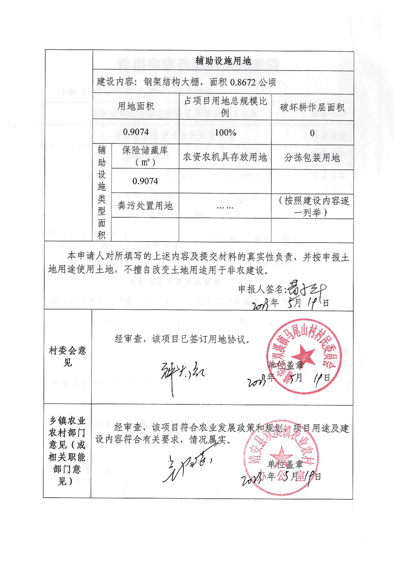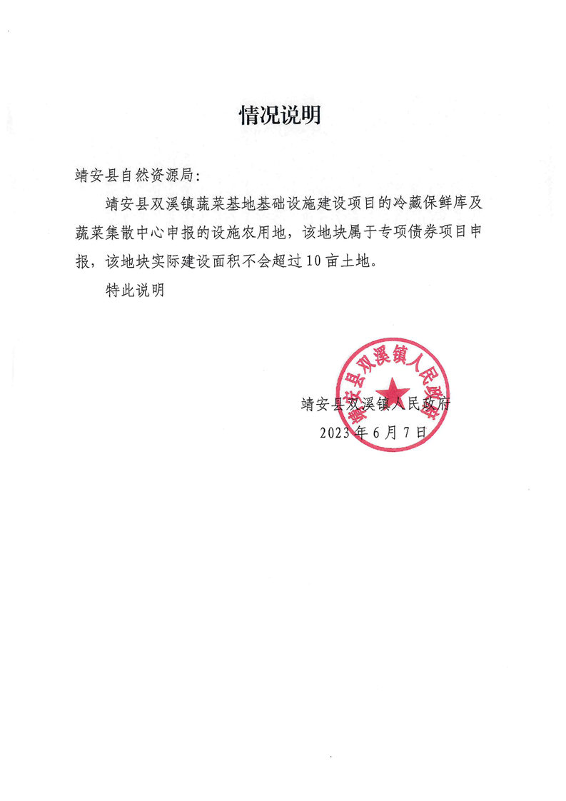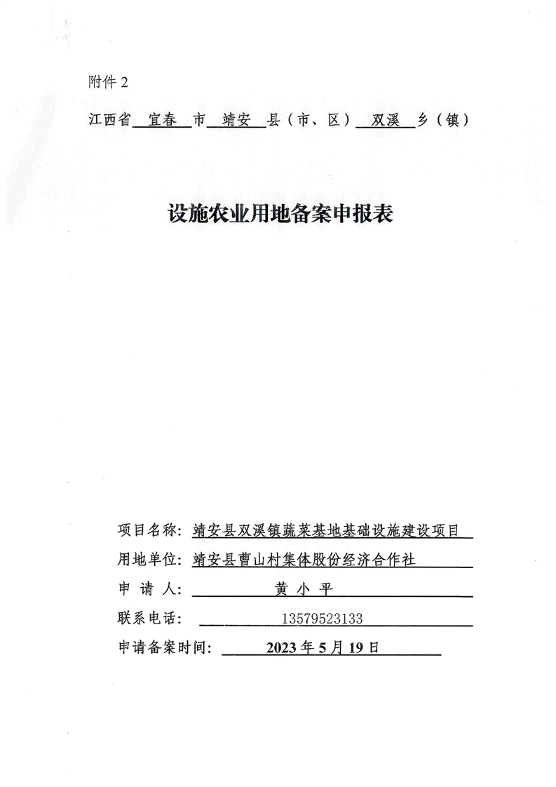 設施農業用地備案申報(雙溪鎮蔬菜基地基礎設施建設項目)