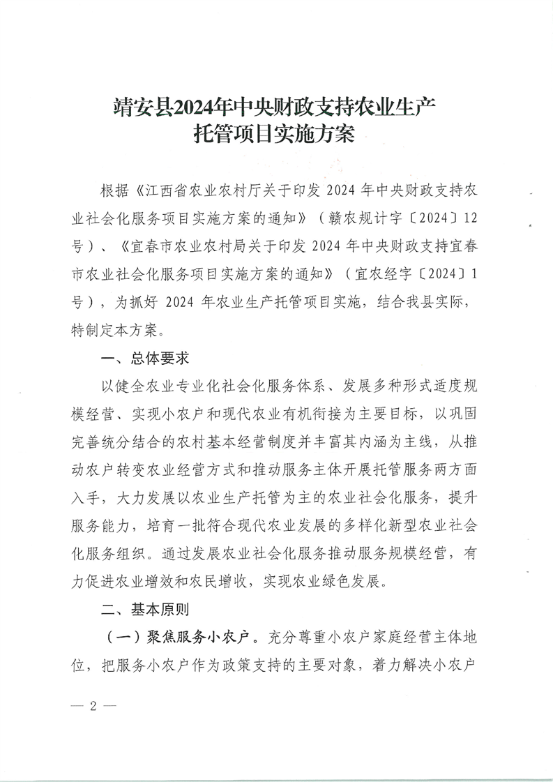 靖府辦字〔2024〕45號 靖安縣人民政府辦公室關(guān)于印發(fā)《靖安縣2024年中央財(cái)政支持農(nóng)業(yè)生產(chǎn)托管項(xiàng)目實(shí)施方案》的通知