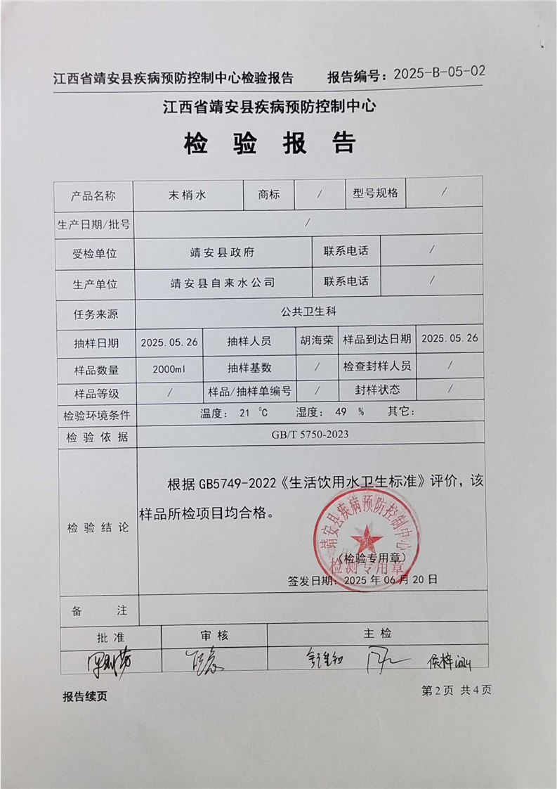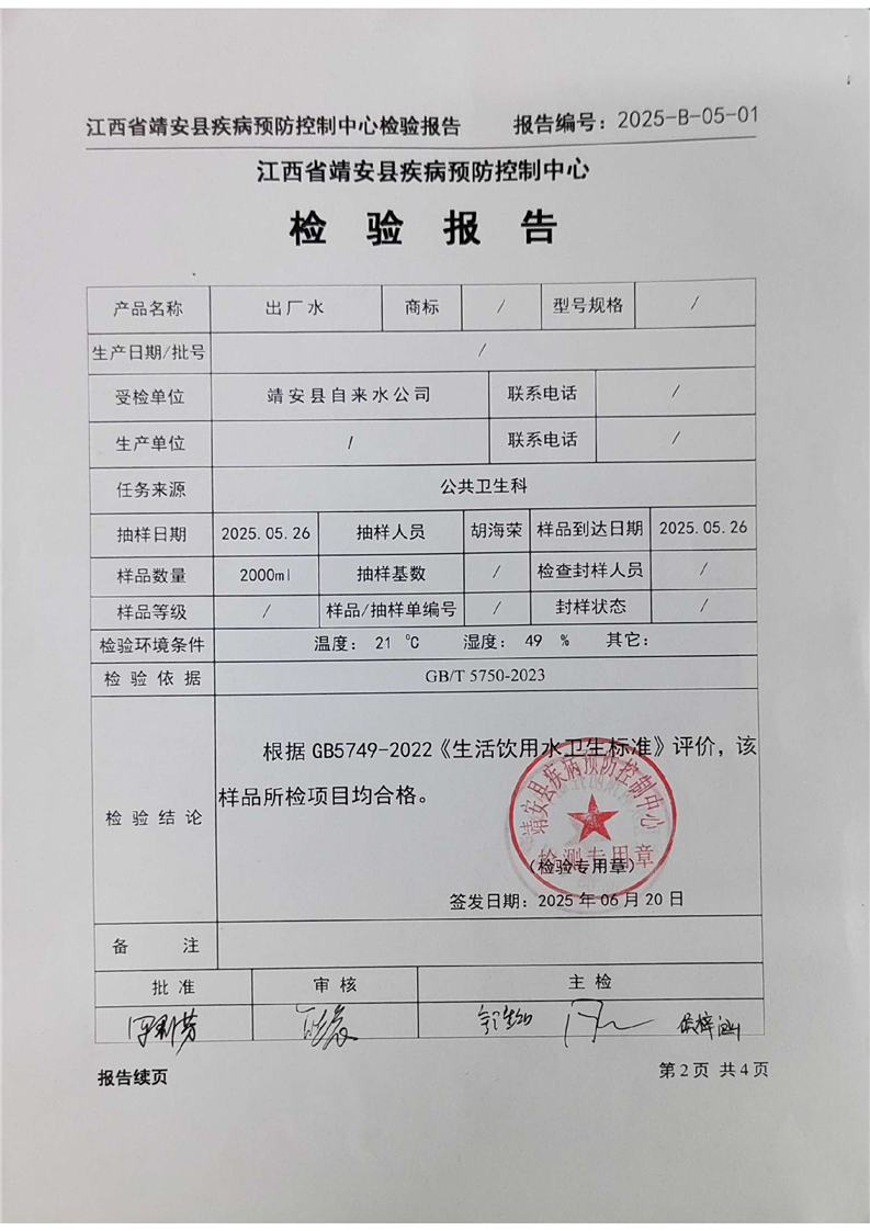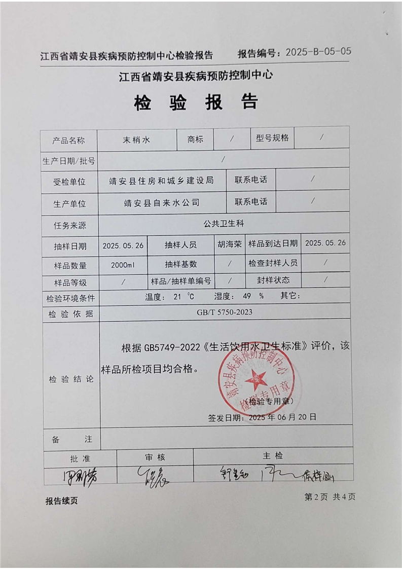 2025年二季度水質檢驗報告