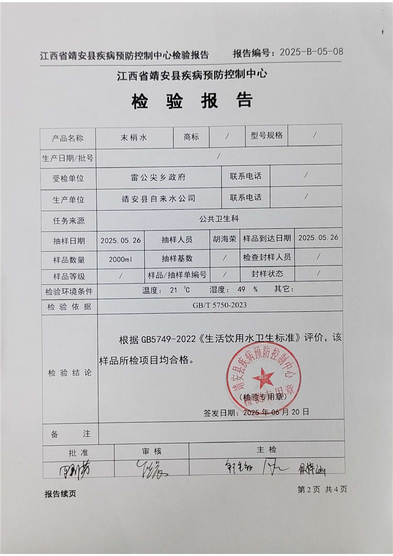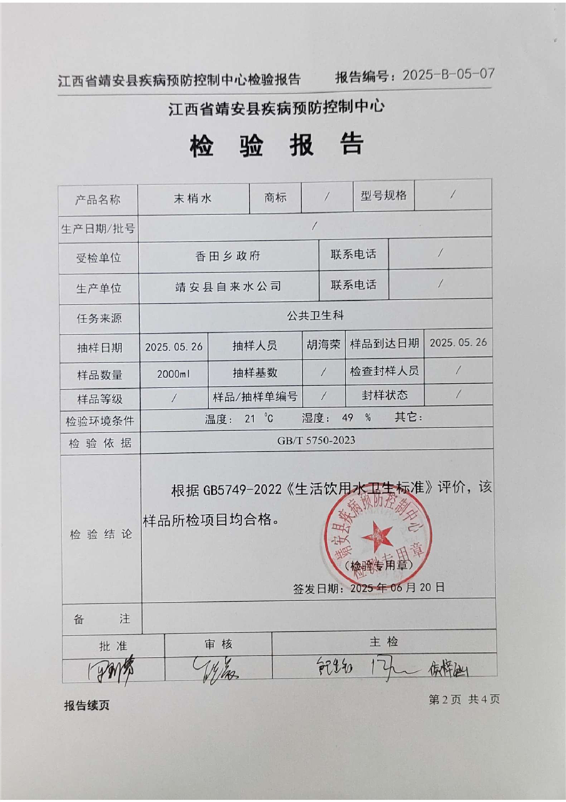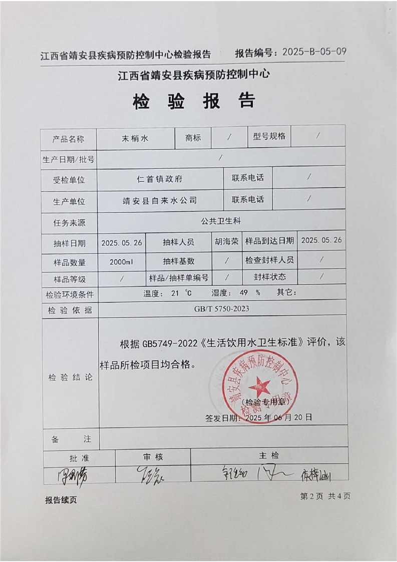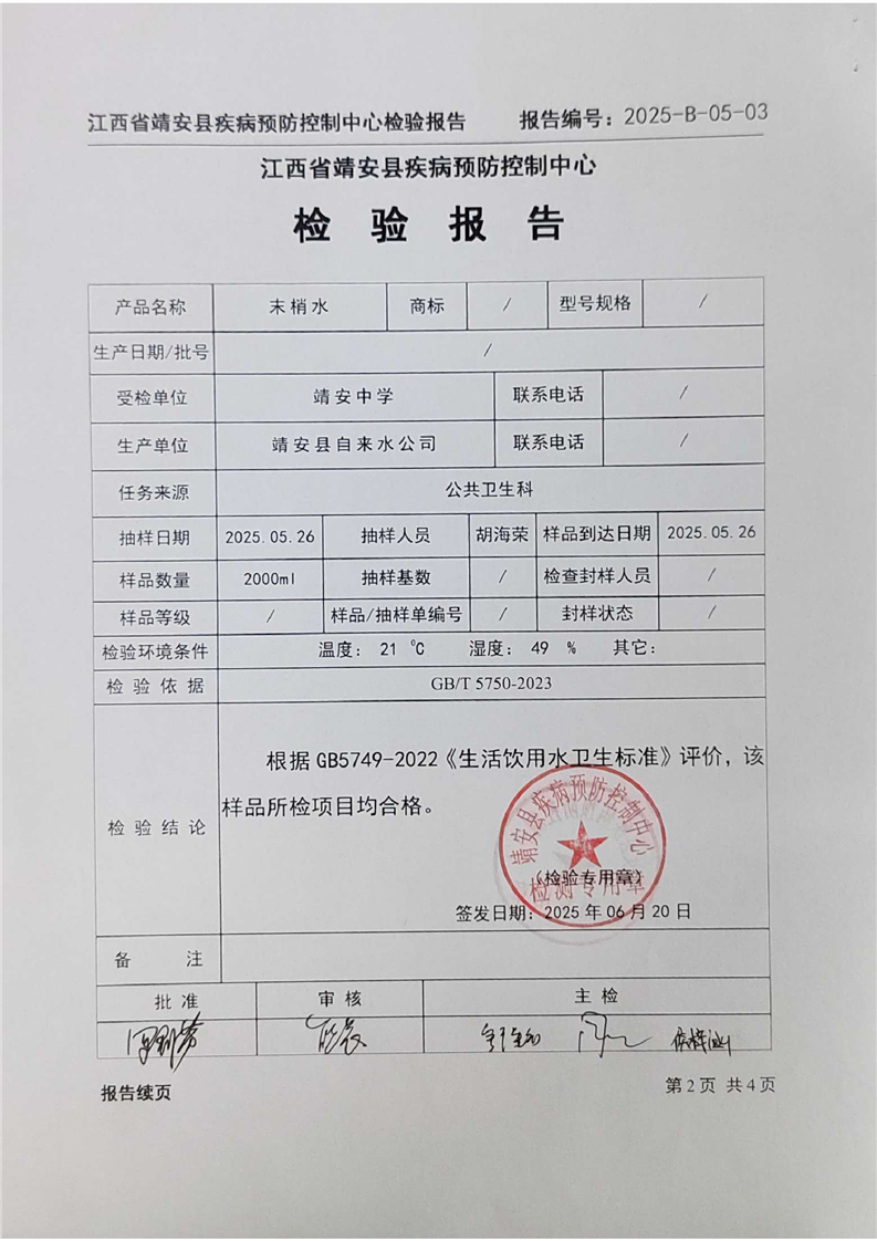 2025年二季度水質檢驗報告