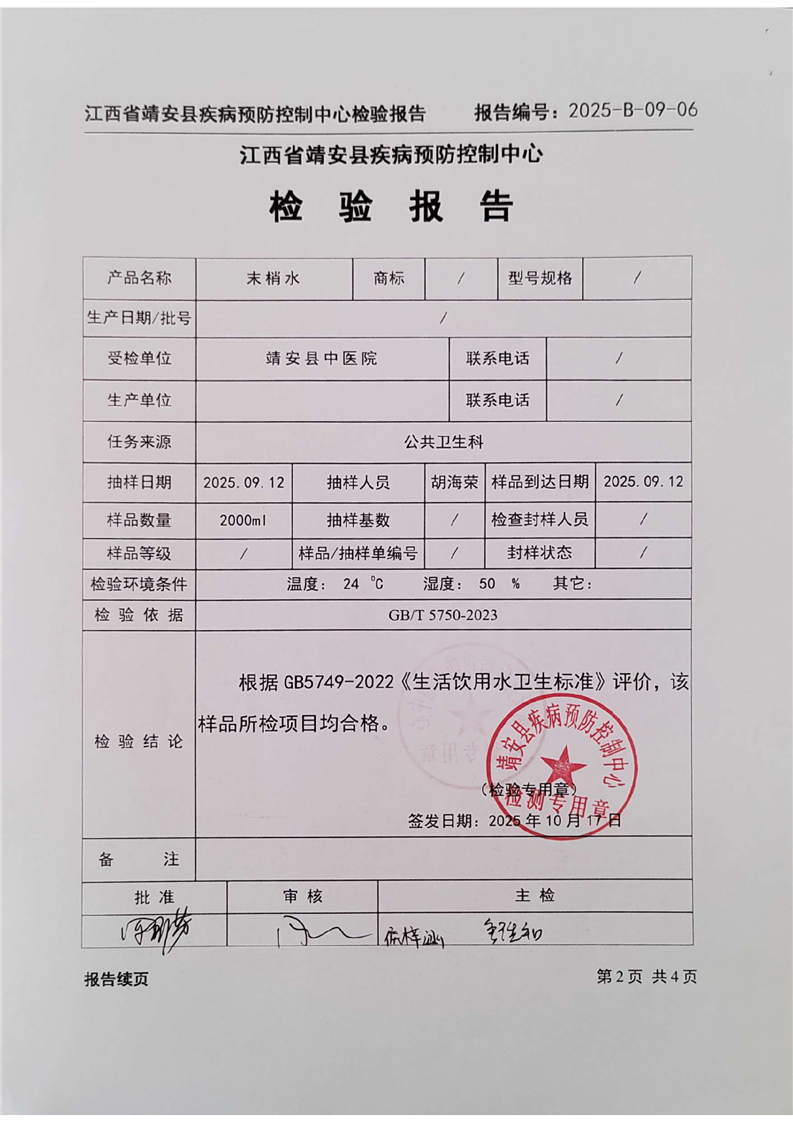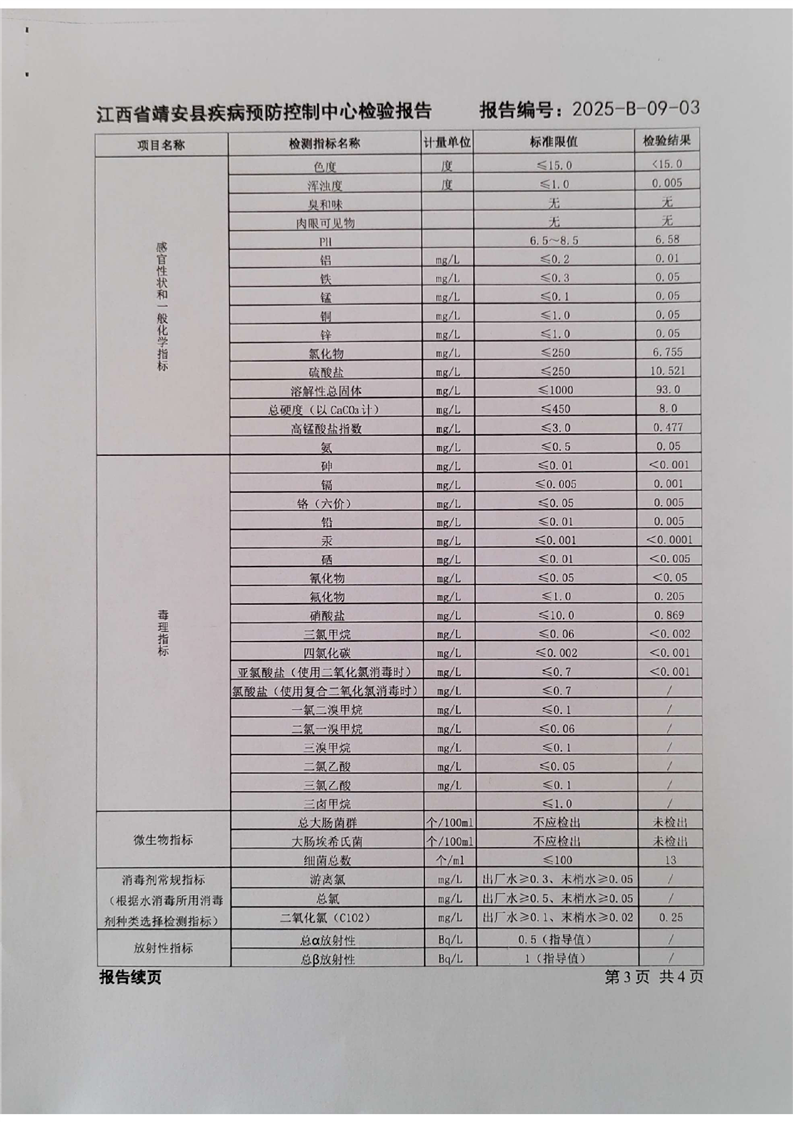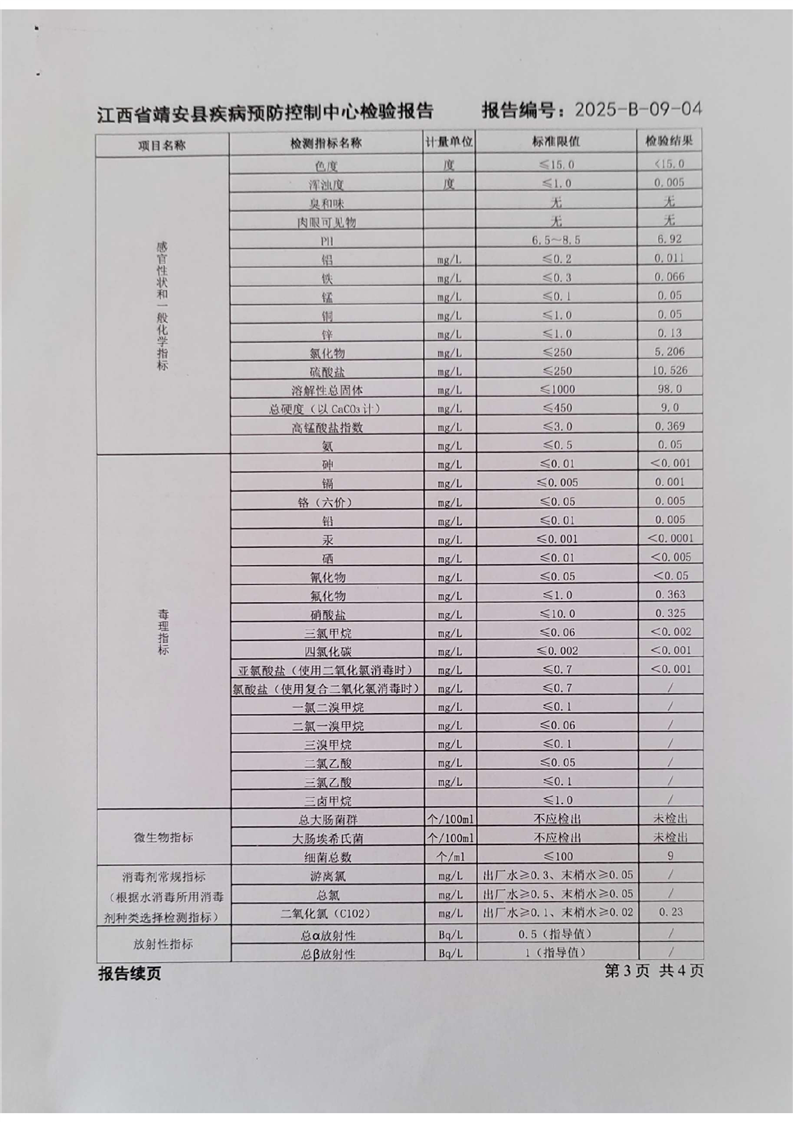 2025年三季度水質檢驗報告