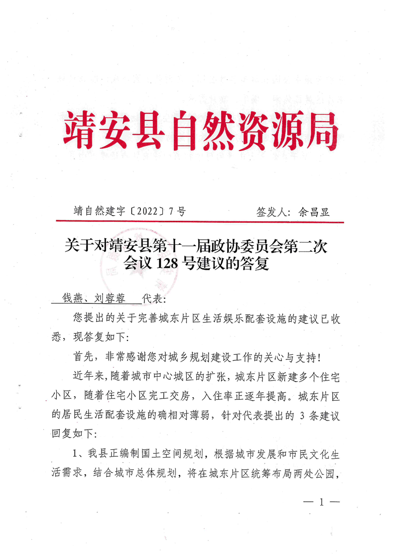 關于對靖安縣第十一屆政協委員會第二次會議128號建議的答復