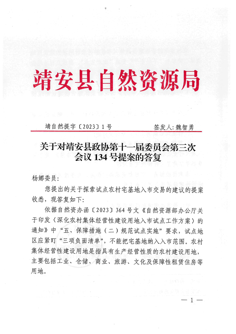 關于對靖安縣政協第十一屆委員會第三次會議134號提案的答復(自然資源)