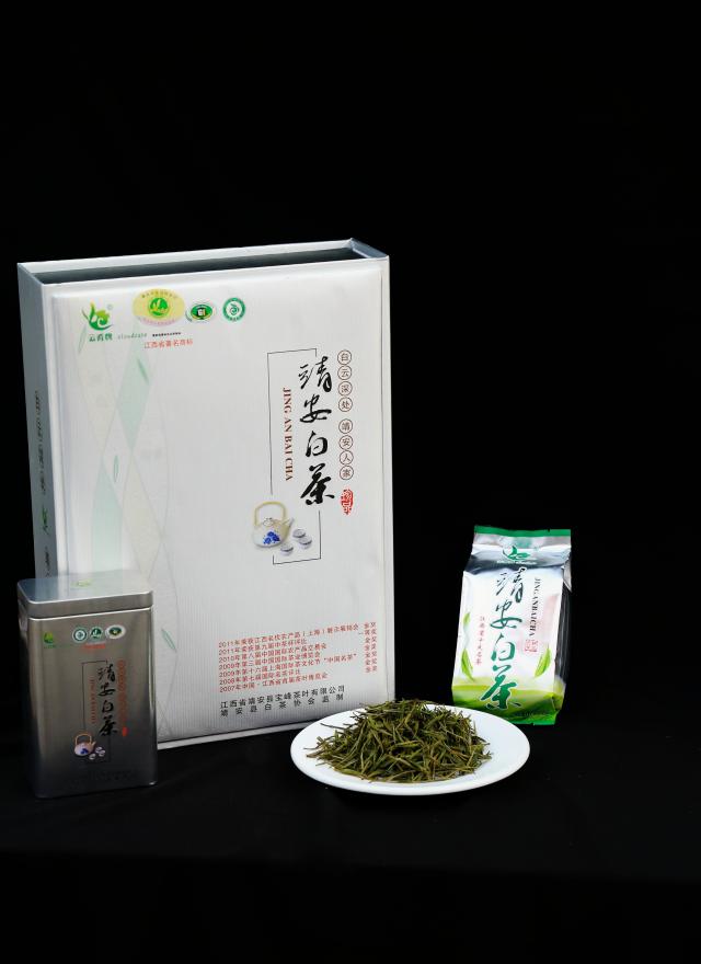 白茶是綠茶中的珍稀品種,其成品茶多為二葉一芯嫩芽,在春季發芽時,新梢嫩葉的葉色呈可逆性白化現象,滿披白毫,外形條素天然,色為玉霜,光亮油潤,肉質自然展開頗具高雅特色。其氨基酸含量是高檔綠茶的6-8倍,倍受人們喜愛。