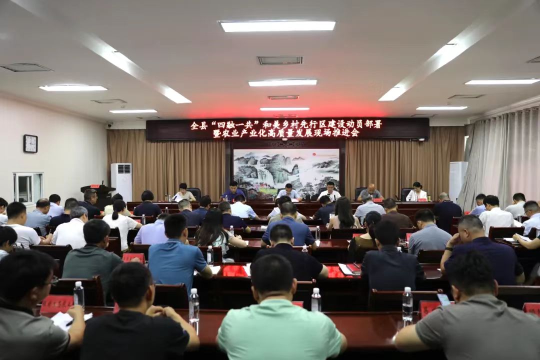 6月17日,縣委書記曾海主持召開全縣“四融一共”和美鄉村先行區建設動員部署暨農業產業化高質量發展現場推進會。他強調,全縣上下要深入學習習近平總書記關于“三農”工作的重要論述精神,認真落實省委、市委決策部署,學好用活“千萬工程”經驗,加快推進“四融一共”和美鄉村建設和農業產業化高質量發展,全力以赴推動鄉村全面振興。