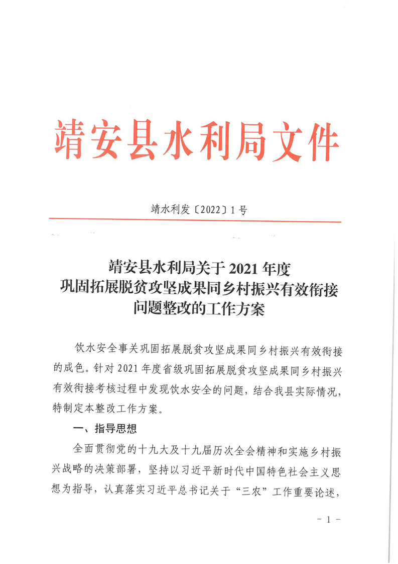 靖安縣水利局關(guān)于2021年度鞏固拓展脫貧攻堅成果同鄉(xiāng)村振興有效銜接問題整改的工作方案