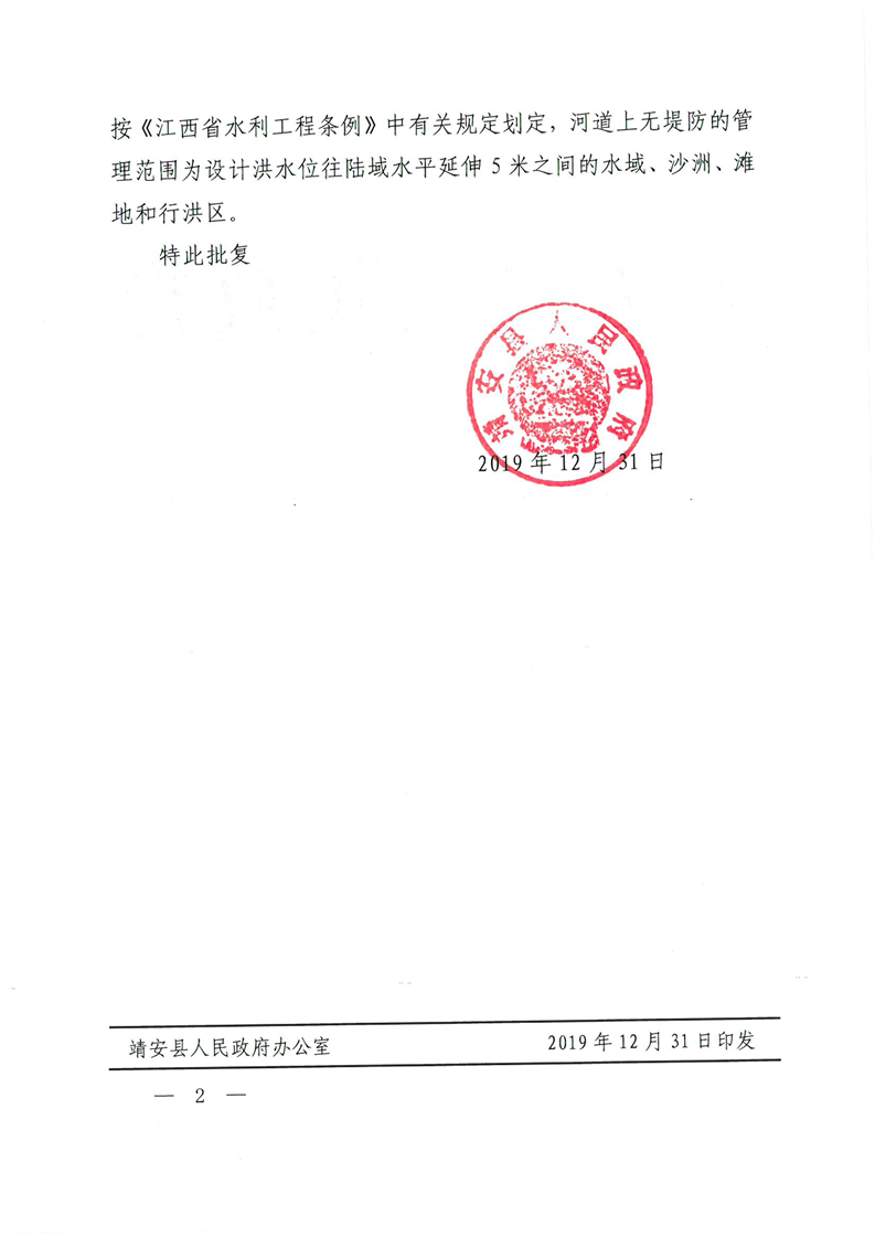 靖安縣人民政府關于北潦河(靖安縣)河流管理與保護范圍劃界技術報告的批復