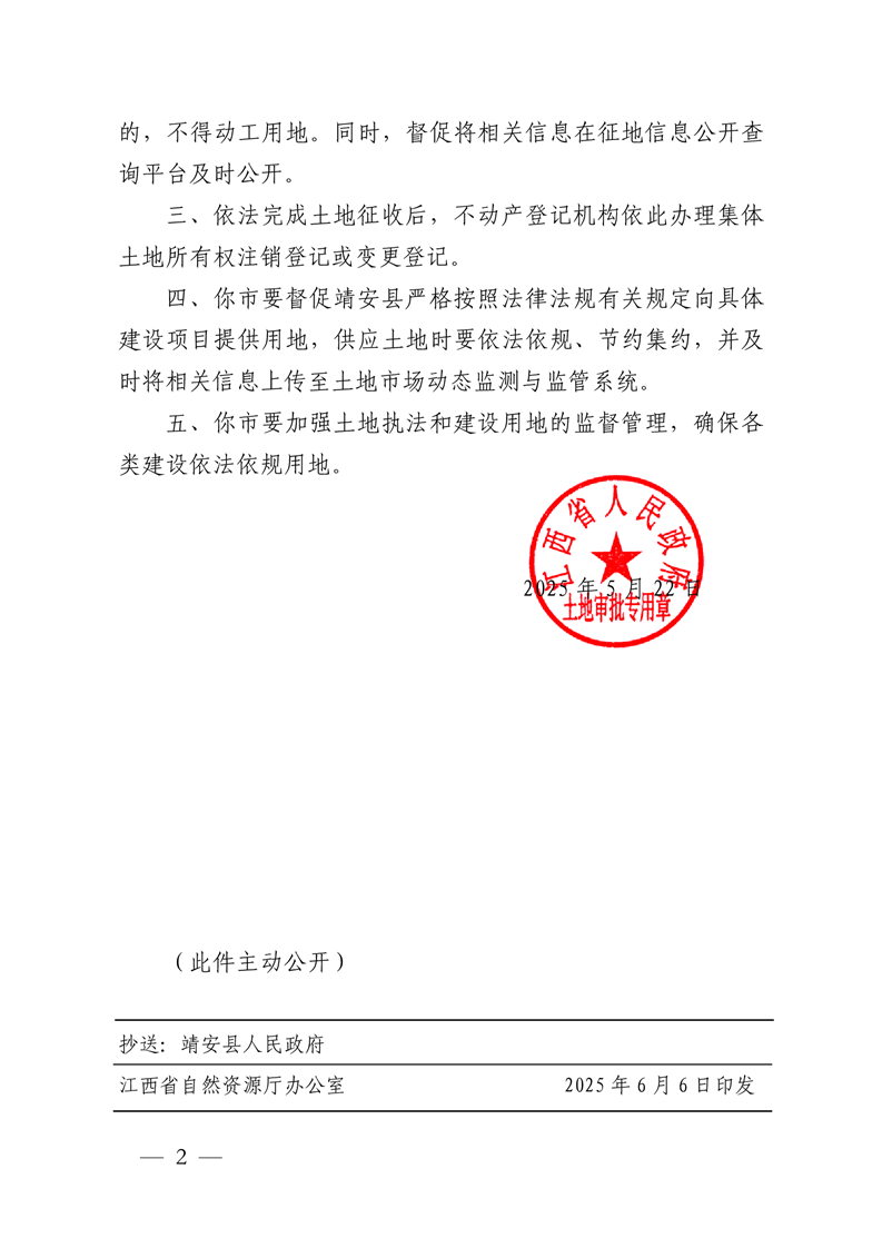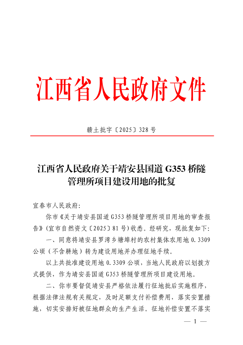 關于靖安縣國道 G353 橋隧管理所項目建設用地的批復