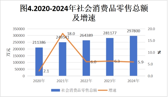 全社會消費品零售總額實現29.78億元,同比增長5.9%。其中限額以上消費品零售總額7.5億元,同比增長17%。