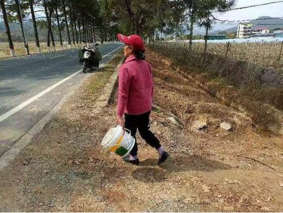 村干部下組巡查發(fā)現(xiàn)路邊有許多白色垃圾,村干部安排保潔員清理。