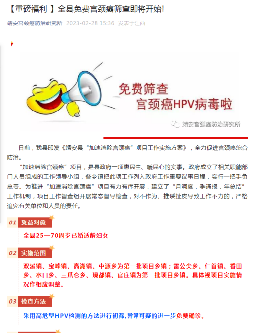 全縣免費(fèi)宮頸癌篩查