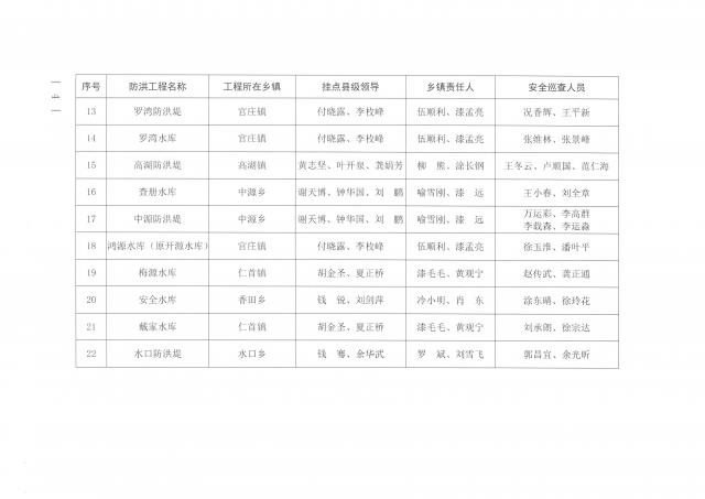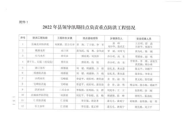 2022年縣領導汛期掛點負責重點防汛工程情況