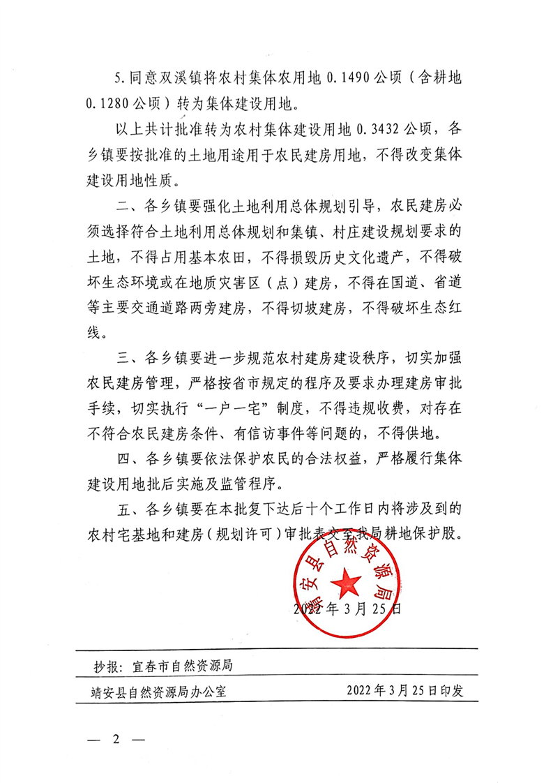 關(guān)于靖安縣2022年度第一批次農(nóng)民住宅建設(shè)用地的批復(fù)