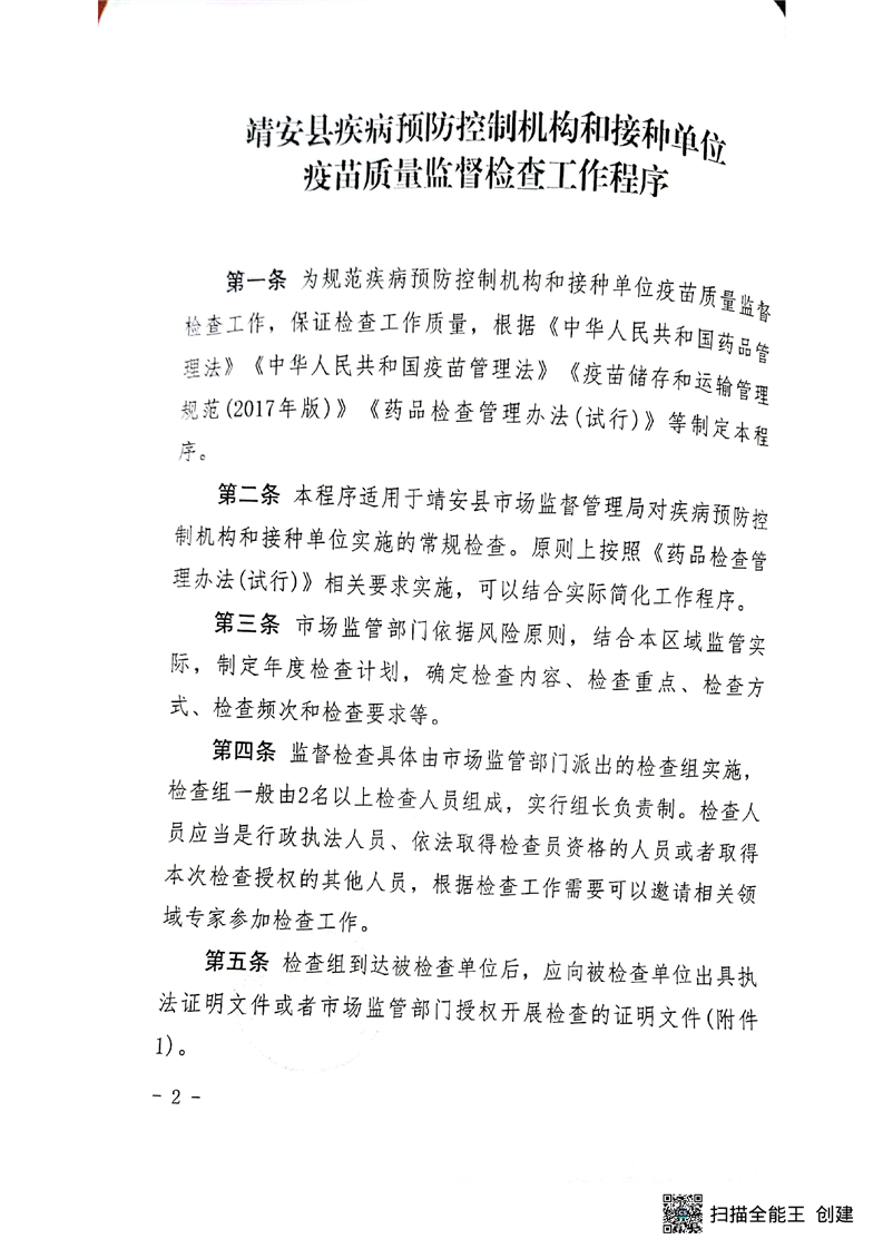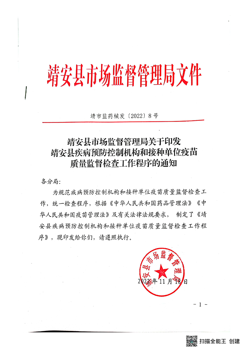 靖安縣市場監督管理局關于印發靖安縣疾病預防控制機構和接種單位疫苗質量監督檢查工作程序的通知