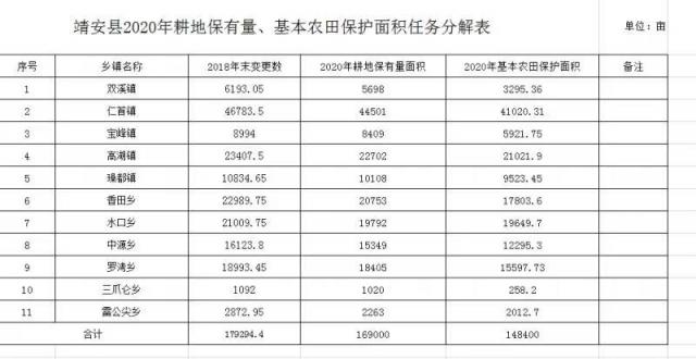 ?靖安縣2020年耕地保有量、基本農田保護面積任務分解表