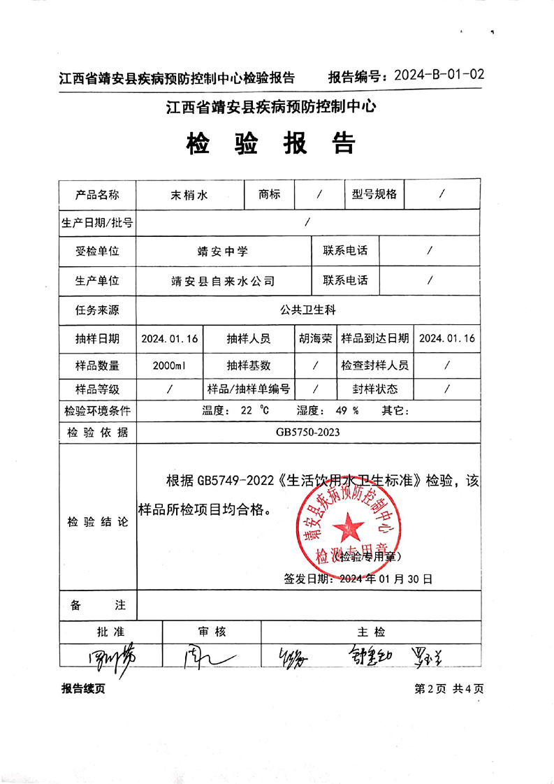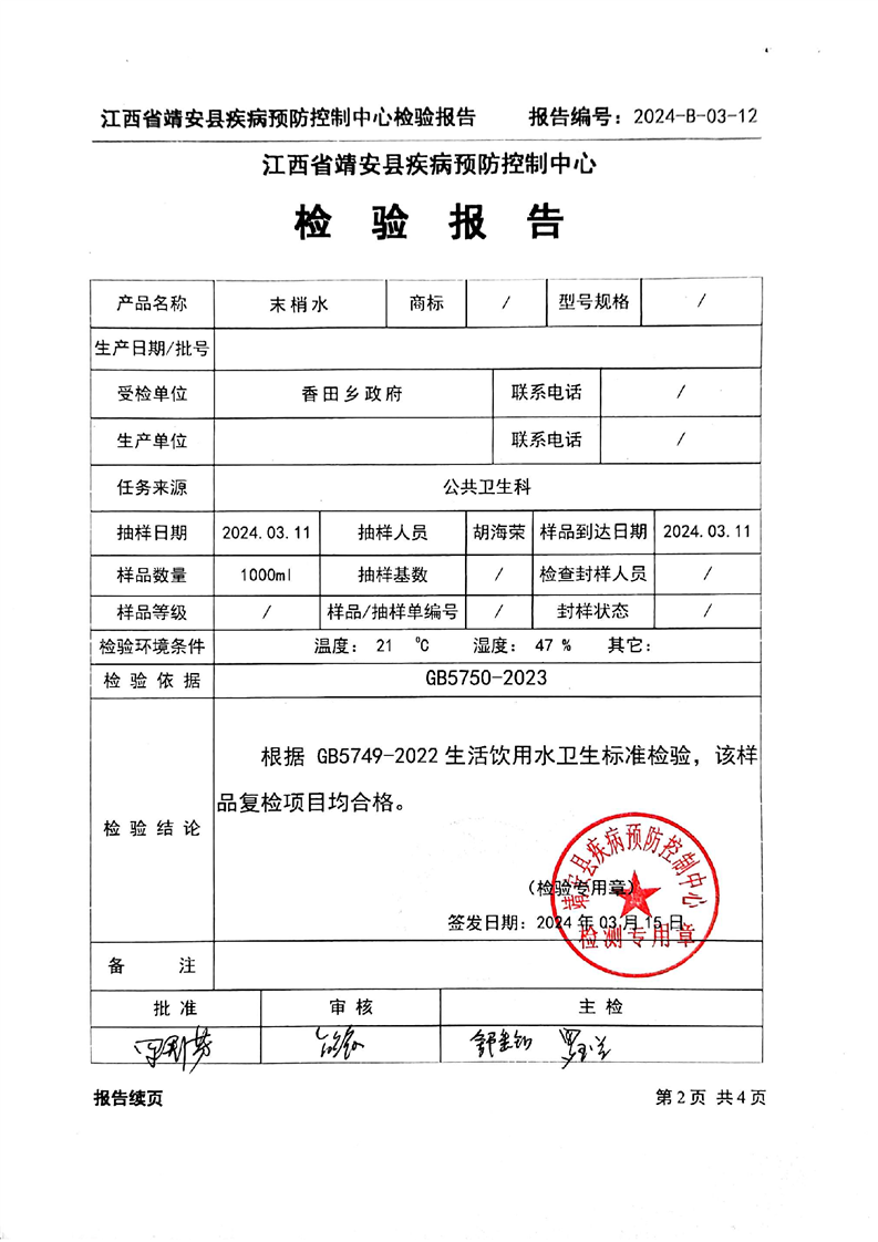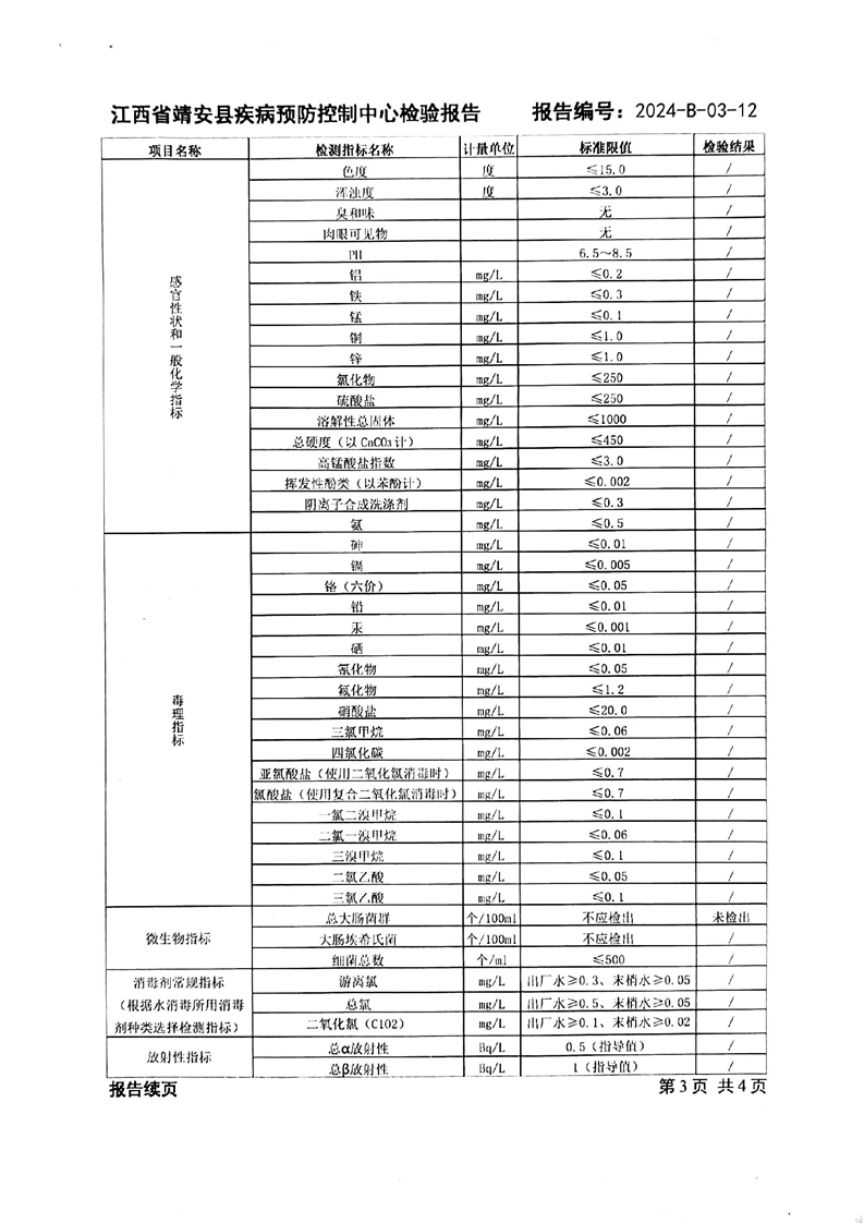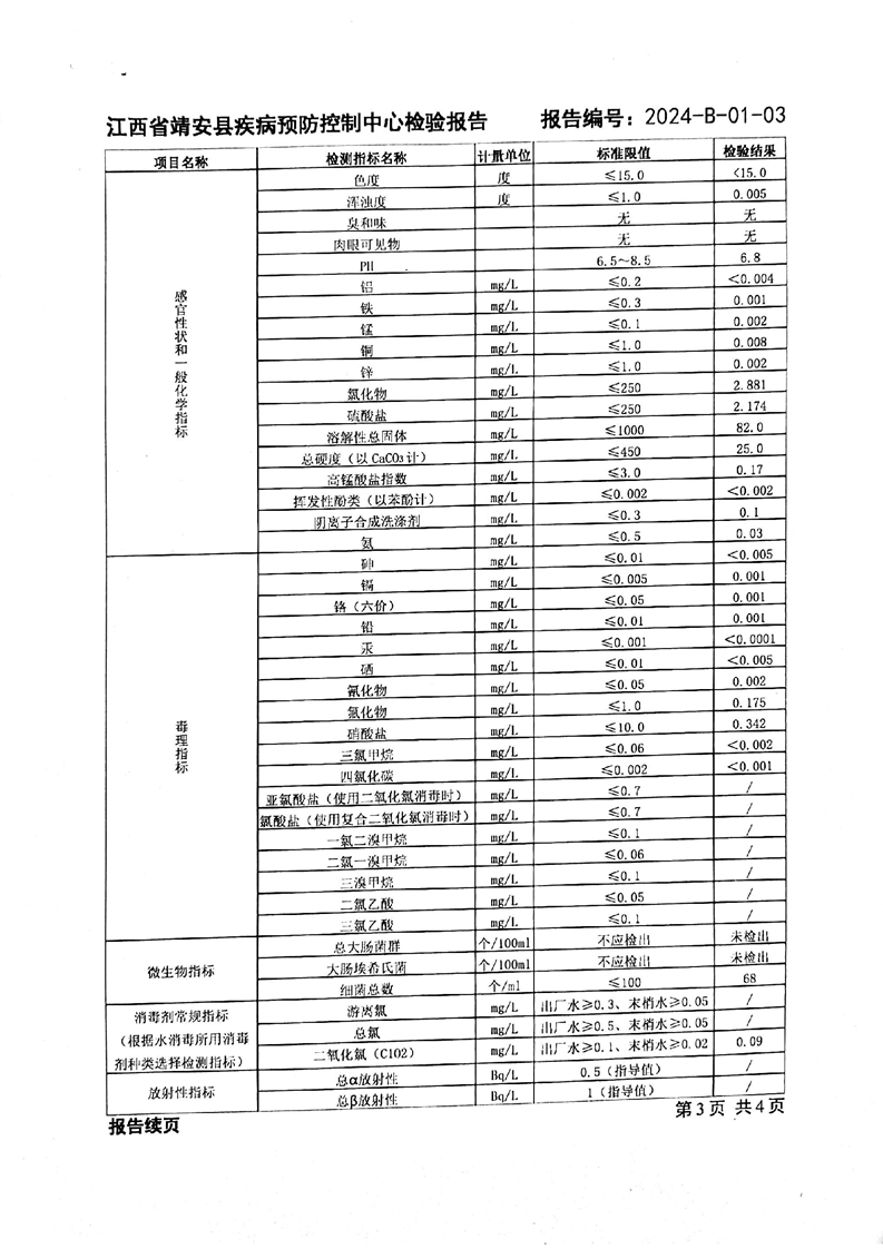 2024年一季度水質檢驗報告