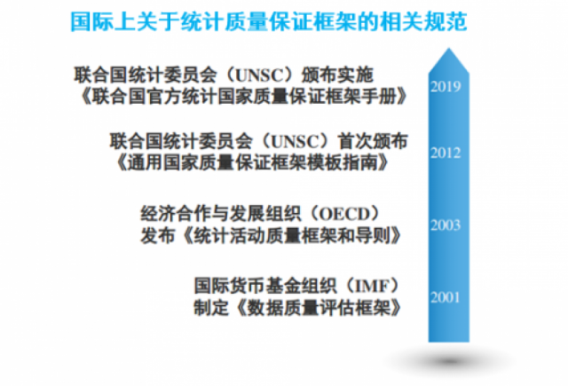 在統計質量管理的長期實踐中,國際組織和外國政府統計機構紛紛構建統計質量保證框架,這些規范性文件對于加強我國統計質量管理、設計制定中國統計質量保證框架具有重要參考借鑒意義。國際貨幣基金組織(IMF)于2001年制定,2003年修訂《數據質量評估框架》,從數據質量的前提條件、統計政策和工作的獨立性和公正性、方法健全性、準確性和可靠性、適用性、可獲得性等方面對數據質量進行評估。經濟合作與發展組織(OECD)于2003年發布《統計活動質量框架和導則》,從數據質量定義和統計的基本原則,制定保證新統計項目質量的程序,定期評估現有統計項目質量,統計質量準則的更新等4個方面對統計活動質量提出規范和指導。聯合國統計委員會(UNSC)于2012年首次頒布《通用國家質量保證框架模板指南》。為適應2030年可持續發展目標(SDG)監測工作需要,于2017年對模版指南進行修訂,形成《聯合國官方統計國家質量保證框架手冊》(NQAF),2019年3月頒布實施。新修訂的NQAF共9個獨立章節,提出了官方統計質量保證的5項核心建議和9項補充建議,并從管理統計系統、管理機構環境、管理統計流程和管理統計產出4個層面明確了19項質量原則與要求。以國際化、通用化、模塊化的方式,形成了質量保證原則、建議、措施緊密結合的一整套工具體系,為各國開展統計質量保證工作提供了值得借鑒的工具、技術和方法。另外,歐盟統計局制定了歐洲統計業務守則以及質量報告標準、質量報告手冊等一套完整的質量工具,在英國、意大利等歐洲國家被廣泛采用;美國制定了聯邦信息質量指南;加拿大統計局參考NQAF制定了統計質量控制指南。統計質量保證工作受到國際統計界的高度重視并逐步走向規范化。