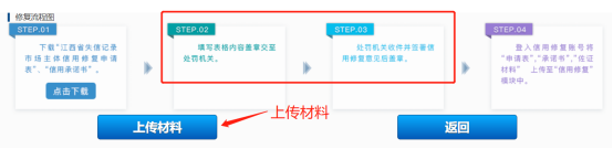 第七步:掃描或滿框清晰拍照1、《信用修復申請書》2、《守信承諾書》(詳見文章末鏈接下載)和繳納罰款憑證及佐證材料等3項資料,并通過信用修復聯絡員賬號、密碼登錄,對應上傳。