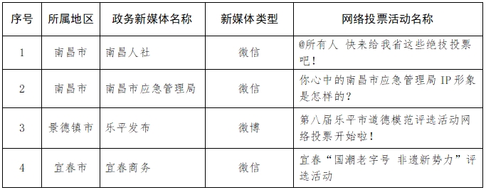 3.檢查發(fā)現(xiàn)未按程序報(bào)備開(kāi)展網(wǎng)絡(luò)投票活動(dòng)的政務(wù)新媒體名單