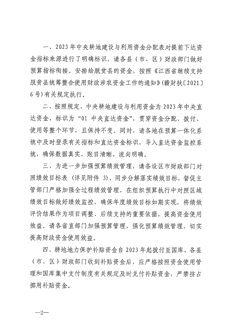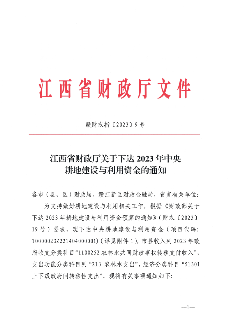 江西省財(cái)政廳關(guān)于下達(dá) 2023 年中央耕地建設(shè)與利用資金的通知