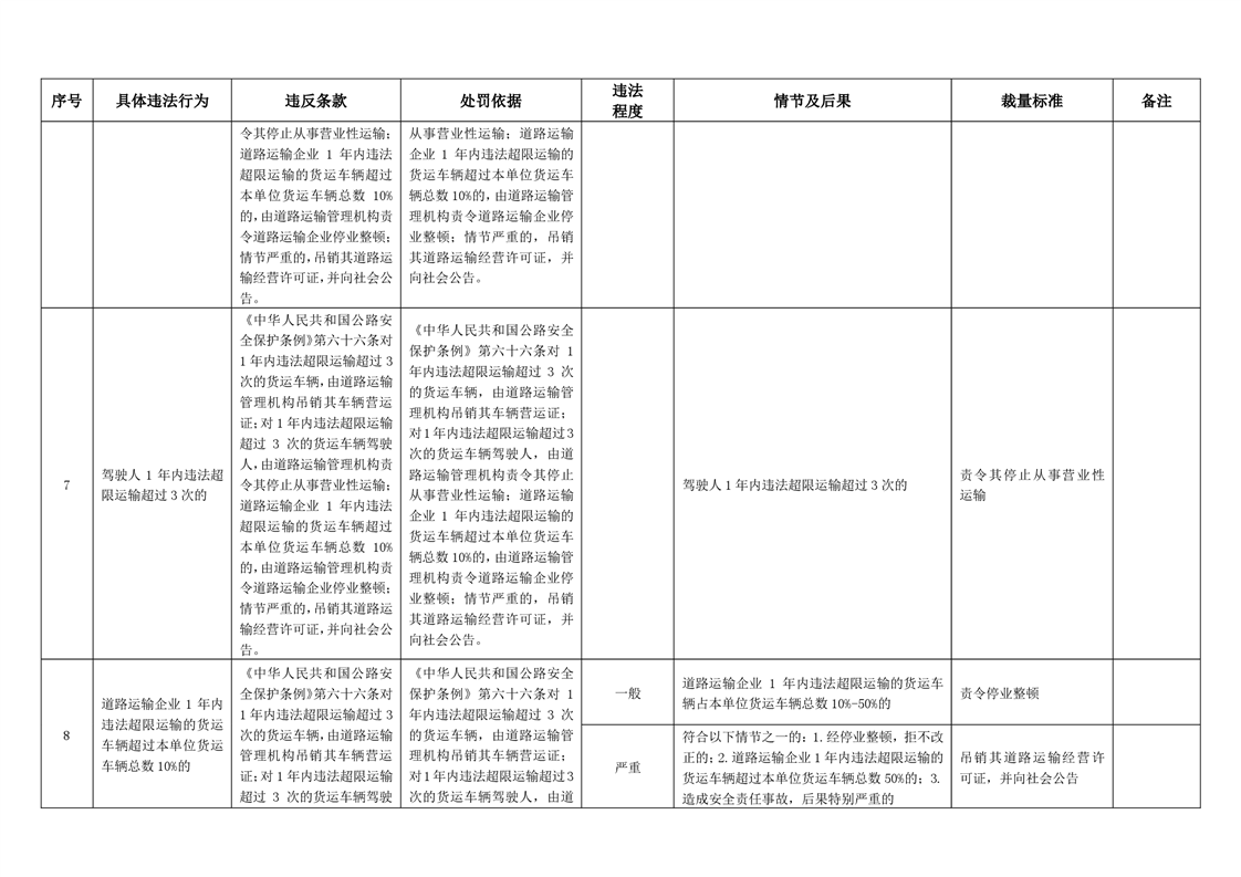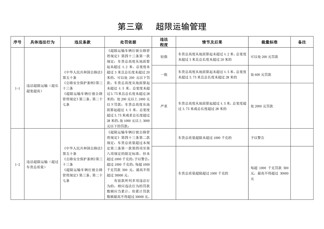 【有效】超限運輸管理行政處罰自由裁量權細化標準(2020年版)