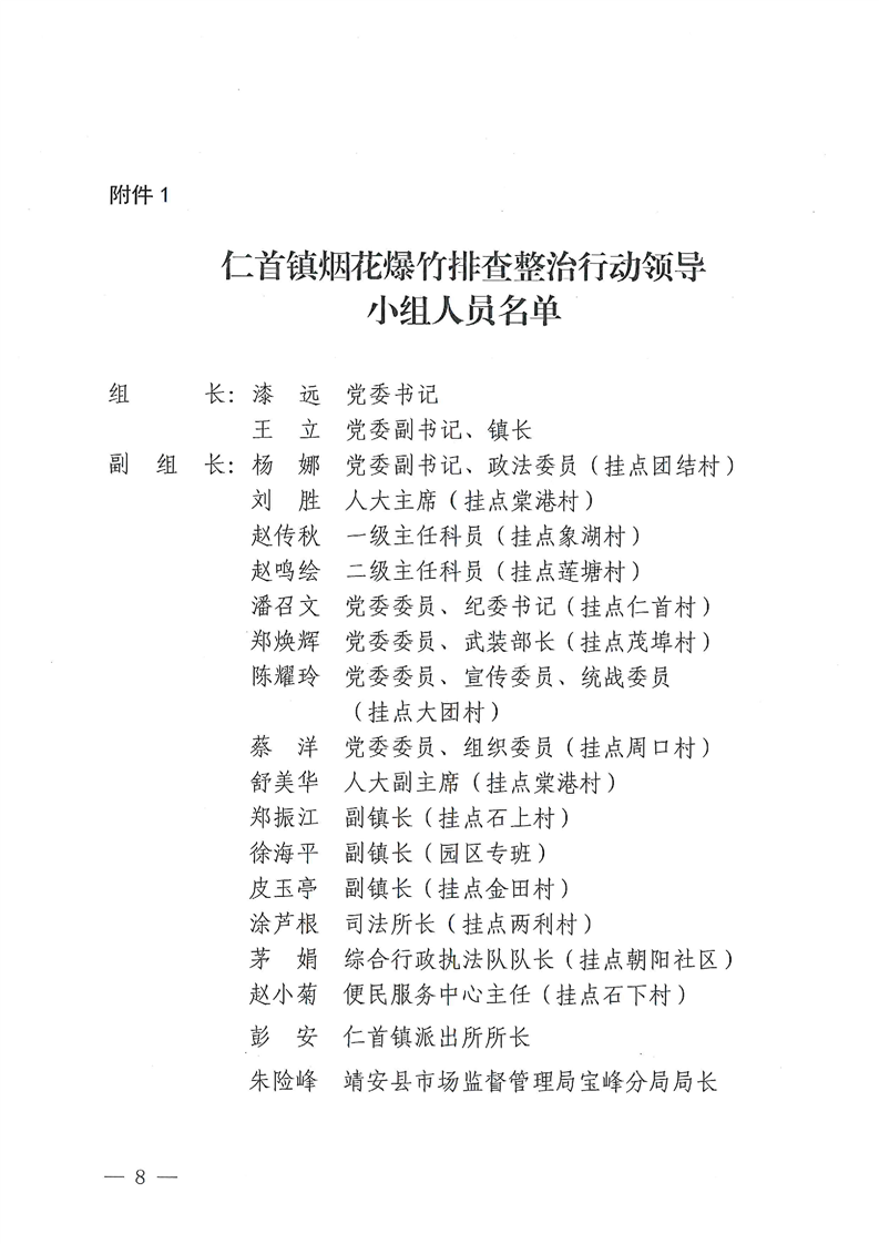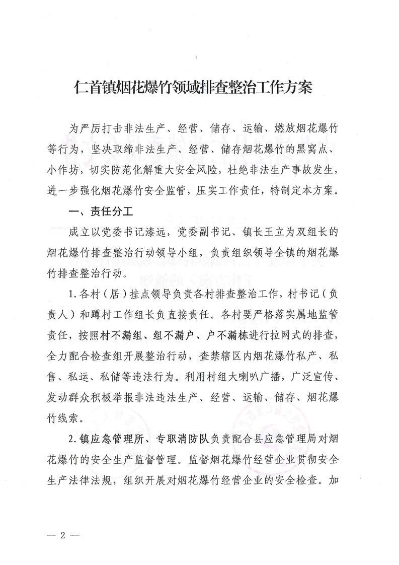 關于印發《仁首鎮煙花爆竹領域排查整治工作方案》的通知