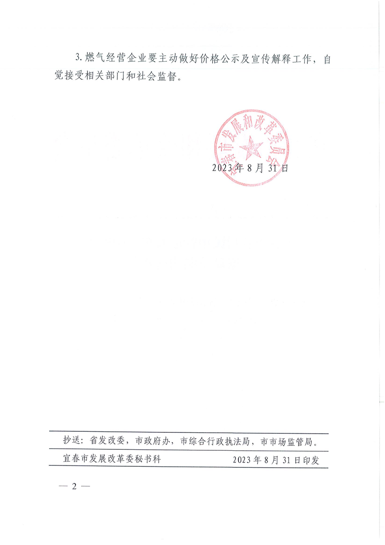 現將宜春市發展和改革委員會《關于我市非居民用管道天然氣銷售價格聯動下調的通知》(宜市發改價格〔2023〕29號)文件轉發給你們,請遵照執行,并做好宣傳解釋和價格公示工作。