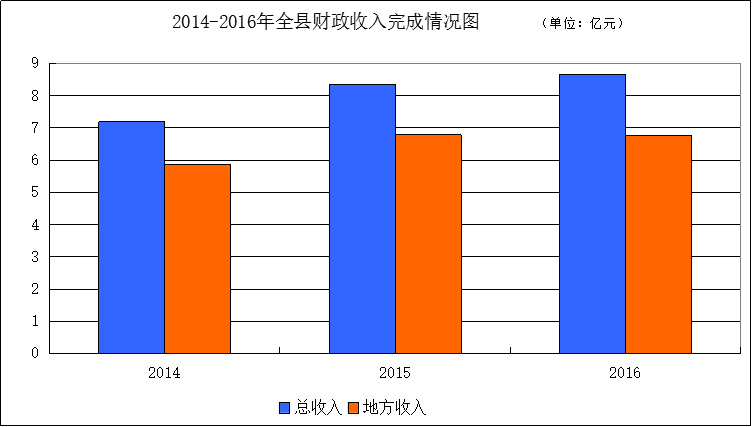 過去的一年,在市委、市政府和縣委的正確領導下,全縣上下緊扣縣委“十六字”方針,致力謀發展、比實干、爭先進,統籌穩增長、抓項目、促改革、優生態、惠民生,完成了全年目標任務,實現了“十三五”良好開局。全縣生產總值39.3億元,增長8.8%;財政總收入8.67億元,增長3.9%,考慮“營改增”減稅因素,同口徑增長9.9%;固定資產投資50.9億元,增長17.7%;規模以上工業增加值16.5億元,增長9.6%;社會消費品零售總額7.75億元,增長12.8%。