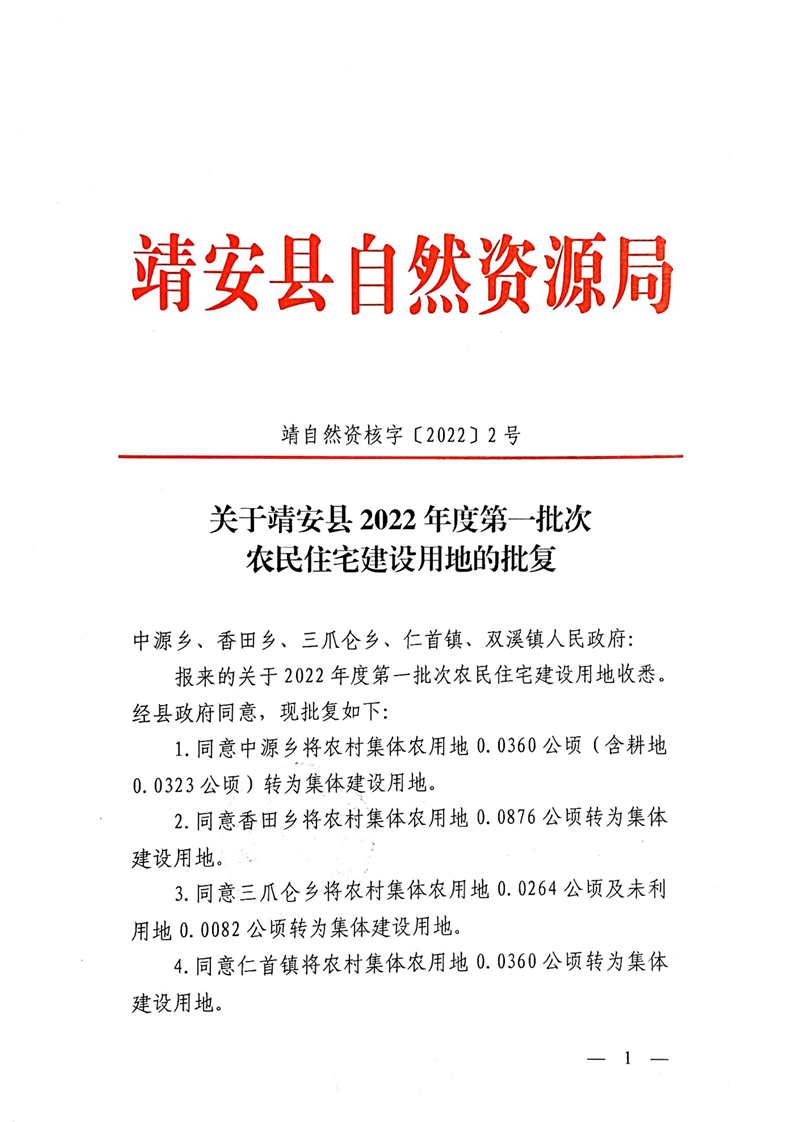 關于靖安縣2022年度第一批次農民住宅建設用地的批復