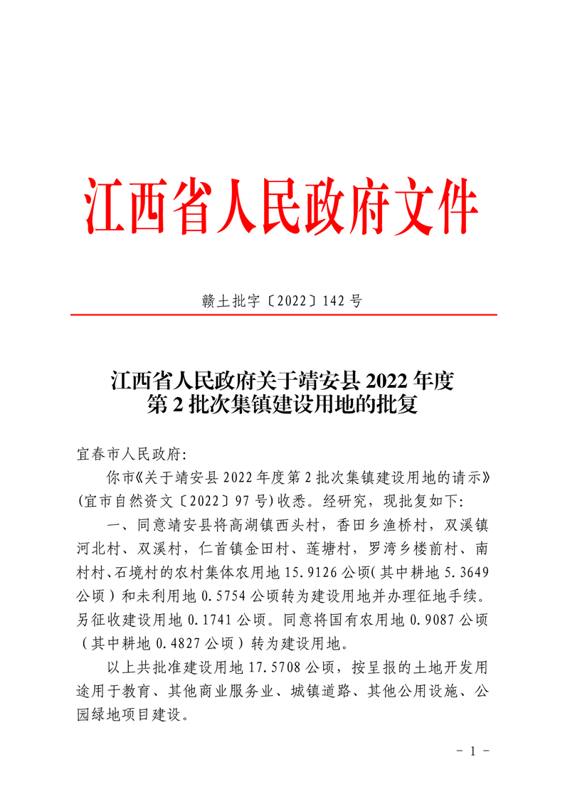 關于靖安縣2022年度第2批次集鎮建設用地的批復