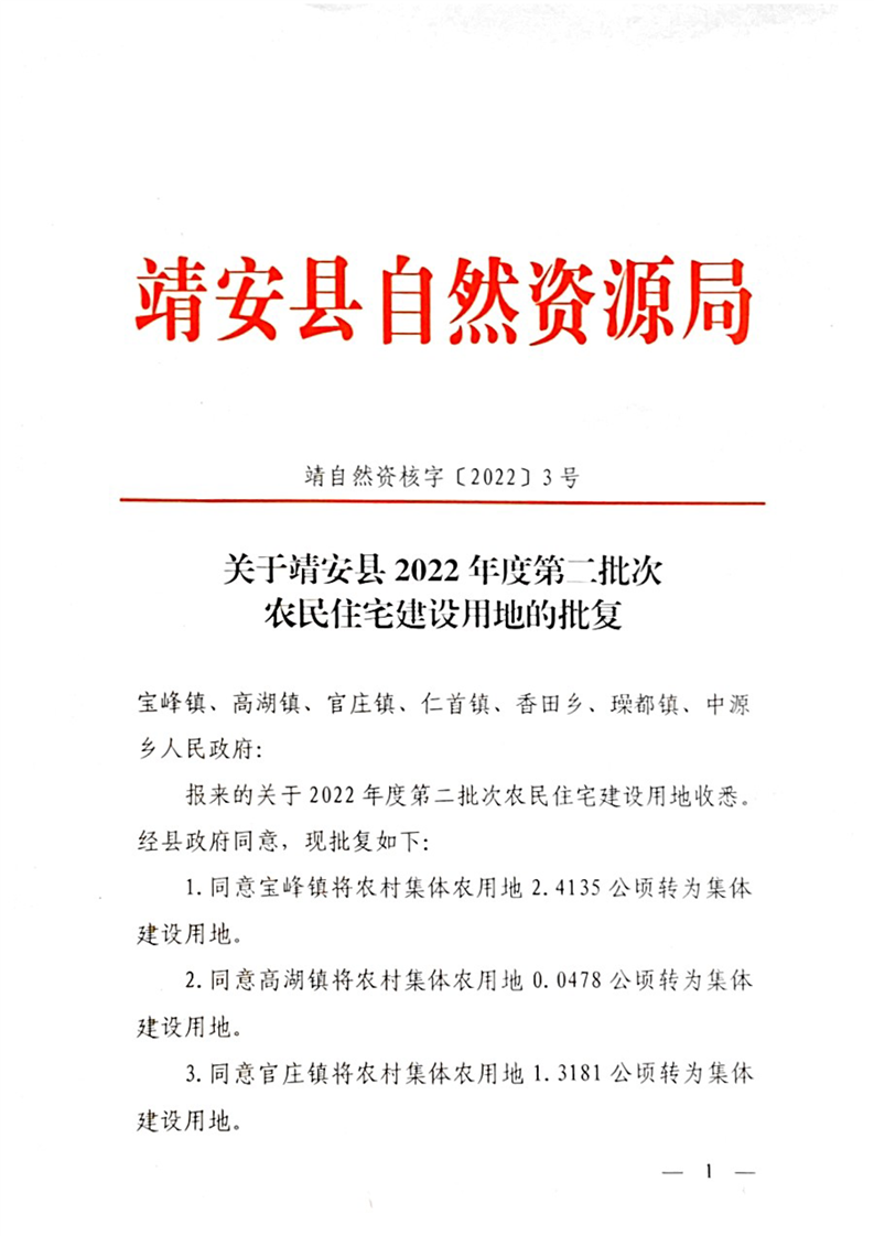 靖安縣2022年度第二批次農(nóng)民住宅建設(shè)用地的批復(fù)
